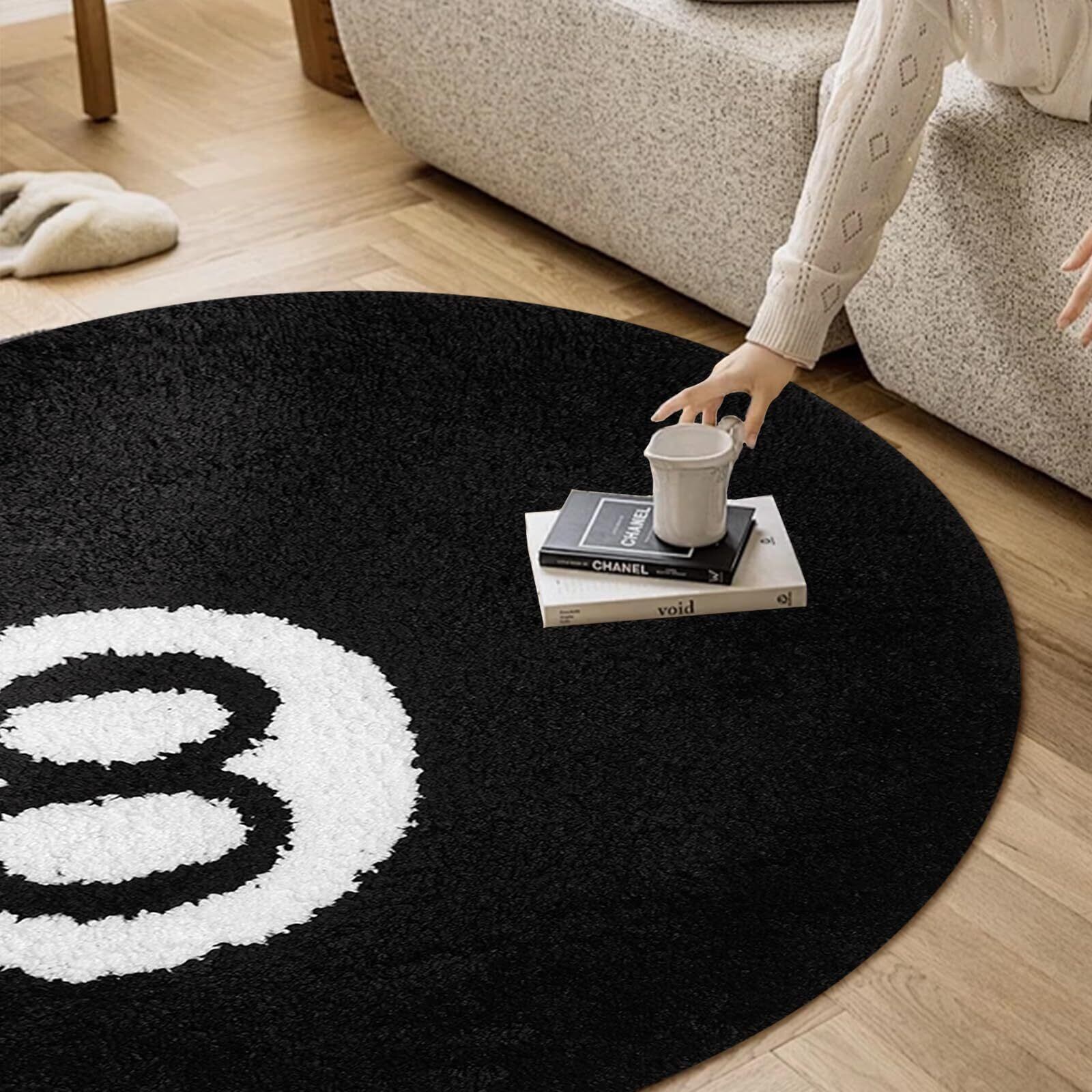 WoLraYuan 8ボール 丸型 部屋 ラグマット おしゃれ 可愛い ふわふわ 玄関 カーペット 洗える ビリヤード シャギー 円形 滑り止め オールシーズン 絨毯 (100×100) | Bloomia