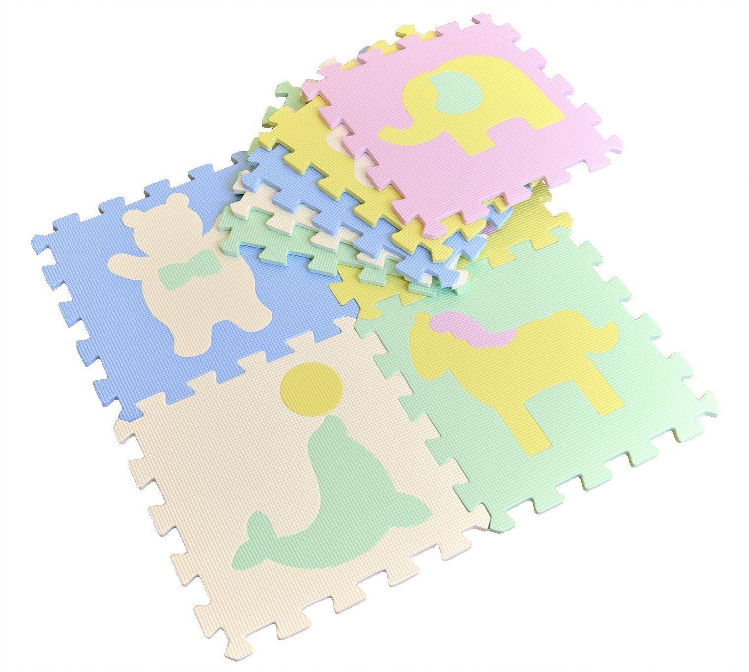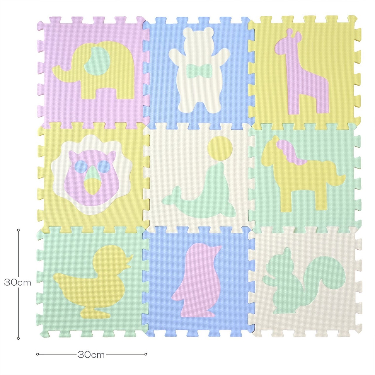 ユノックス 動物 ジョイント パズルマット 30×30×厚み1cm 床暖房対応 ノンホルムアルデヒド 9枚セット 151301