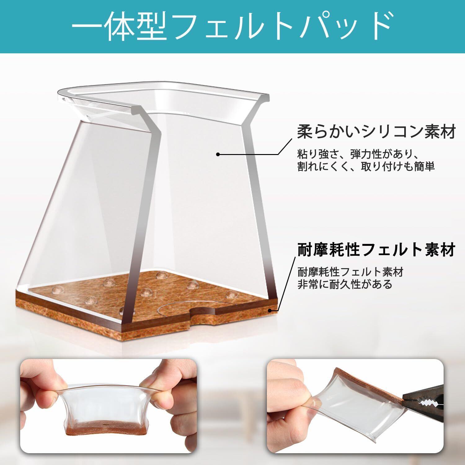 椅子脚カバー 長方形 椅子足カバー きず防止 シリコン 防音 長方形の椅子脚 滑り止め フェルトパッド クリア 8個入-M