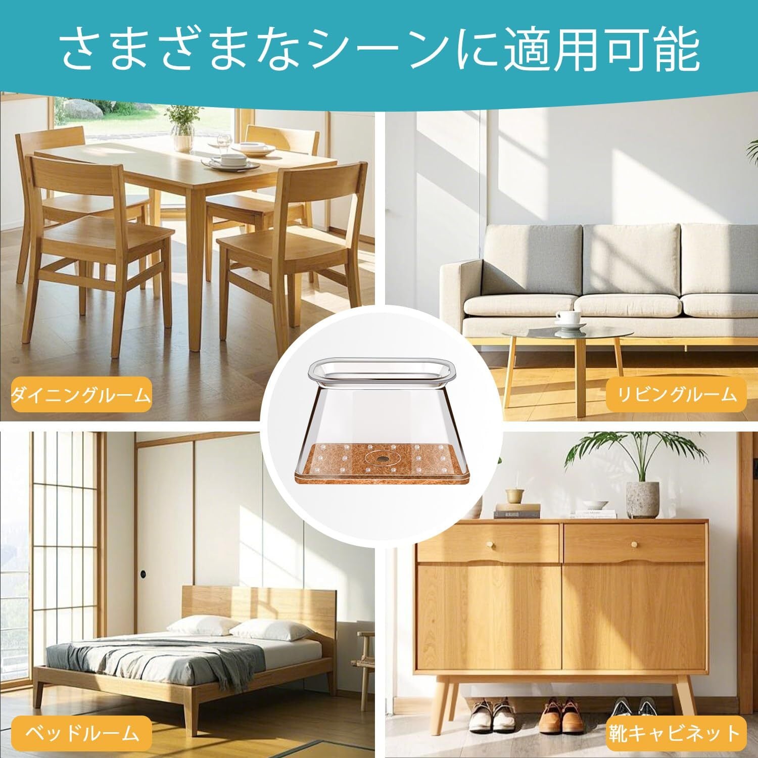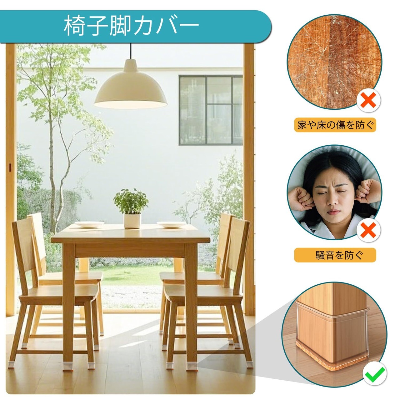素材: この素材は高品質なシリコン製で、椅子の脚をしっかり保護し、床へのキズを防ぎます。シリコンは柔軟で弾力性があり、滑り止め効果も発揮するため、椅子が動きにくく安定します。フローリングやタイルなどの床に最適で、長期間使用しても耐久性が高く、床の美しさを保ちます