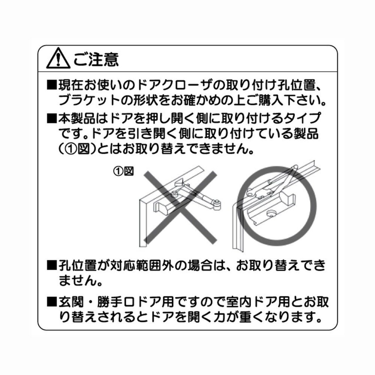 本商品はパラレルタイプ専用となっておりますので、スタンダードタイプのドアクローザーの交換にはご使用いただけません。