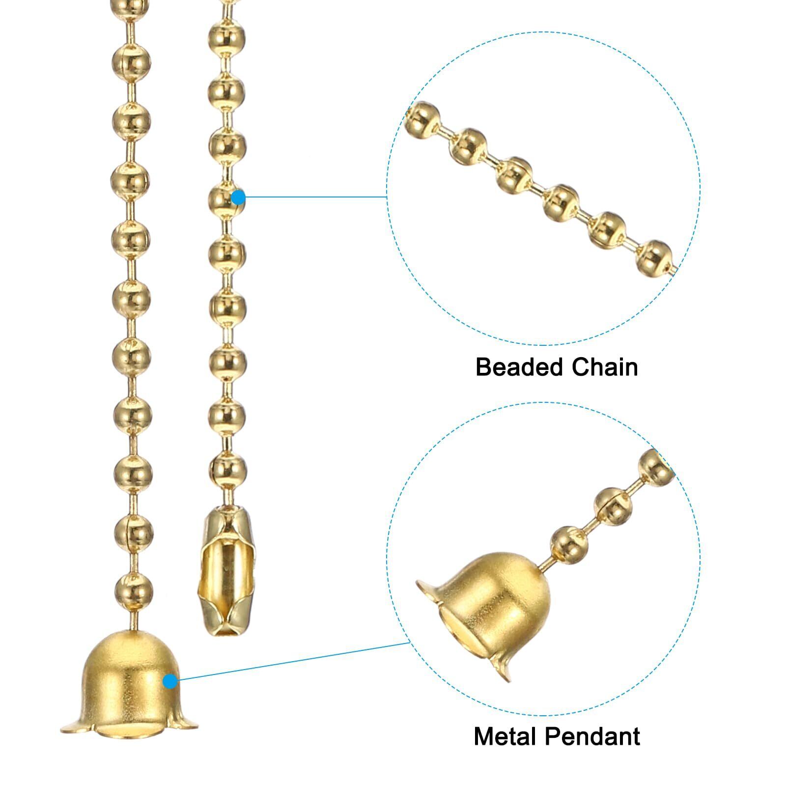 PATIKIL 1M 3.3ft パティオファンプルチェーン 2個ビーズプルコードエクステンダーフラワーペンダントファンライトシャンデリアテーブルランププルスイッチ 金色