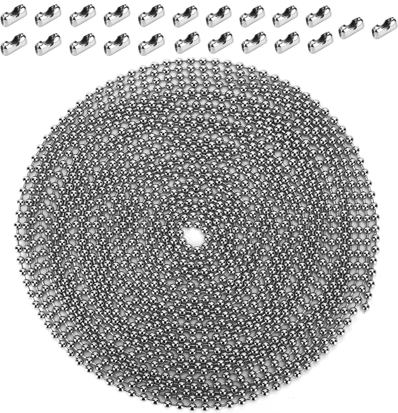 サイズ: ステンレスチェーンの直径は3.2mm、2.4mm、2.0mm、1.5mmなどです。各ボールビーズチェーンの長さは5mで、25個のマッチングコネクター留め具が付き、完全にお客様のニーズを満たします。