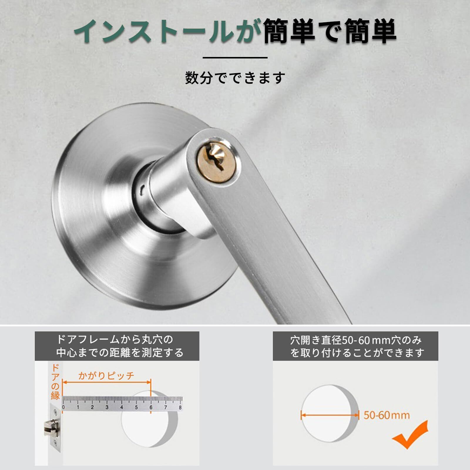 【適用ドア厚さ】本製品はドア厚さ:25-45mmに適用します。取り付け直径50-60mmドア穴、ドア枠から丸穴の中心までの距離60mmを測定します。取り付けミスを避けるために、ご注文前にサイズを測定してください!