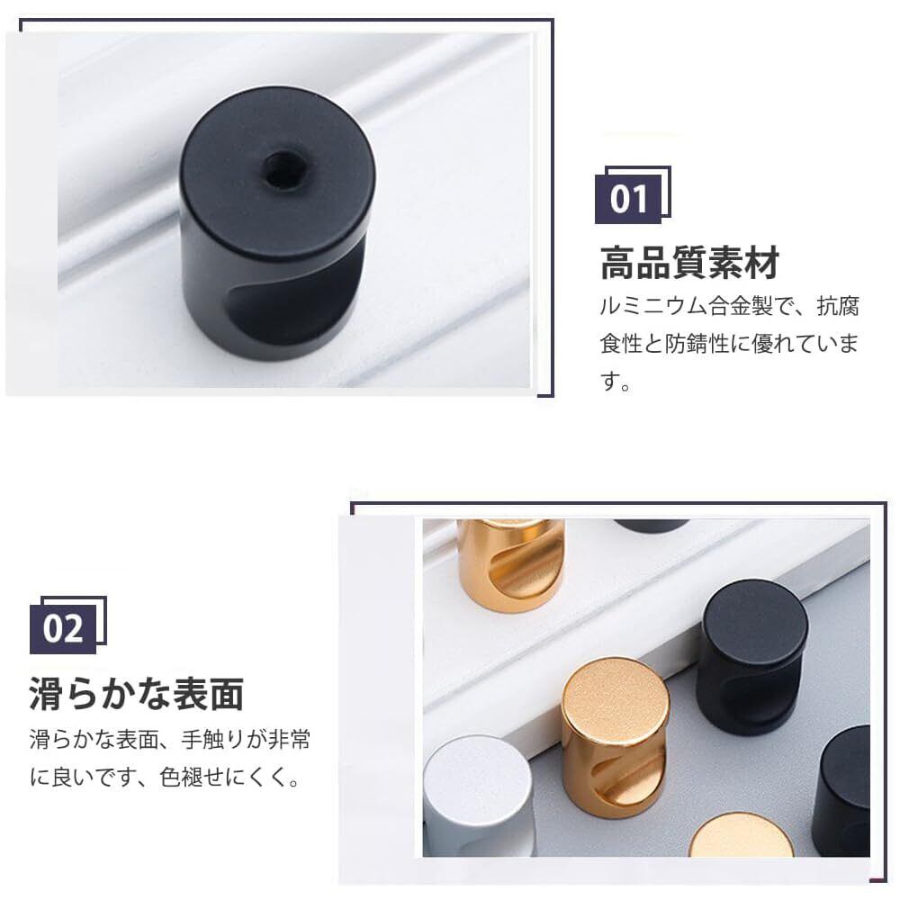 GOODCHI 取っ手 引き出し取手 12個セット アルミ合金 丸型 取っ手 家具/収納棚/デスク/クローゼット用 ネジ付き (ブラック)