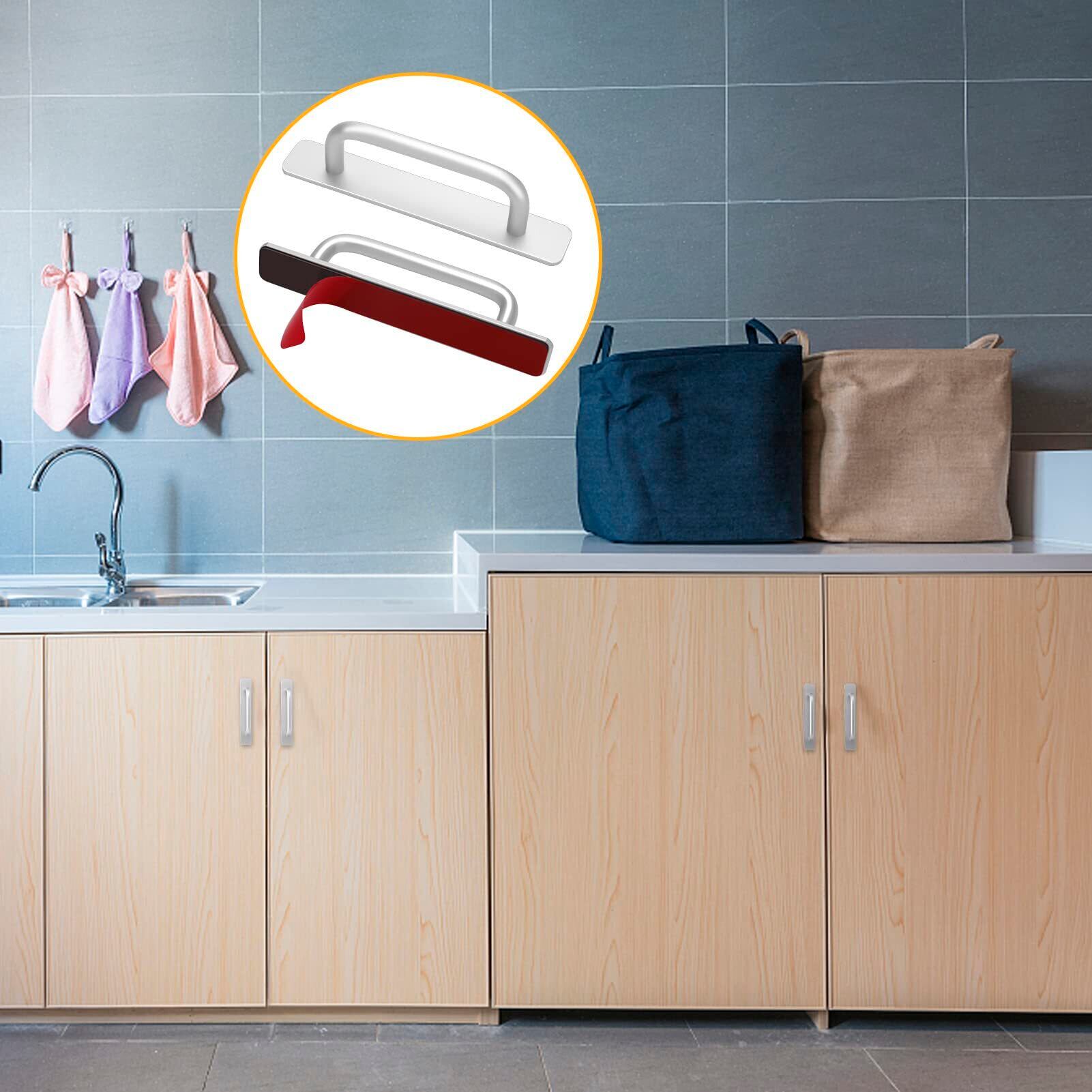 【自己粘着】フリーパンチドアハンドルの背面に接着剤が付いています。接着面の保護フィルムをはがし、家具の適切な場所に貼り付け、約10秒間均等に押してください。それらを引っ張ったり押したりします