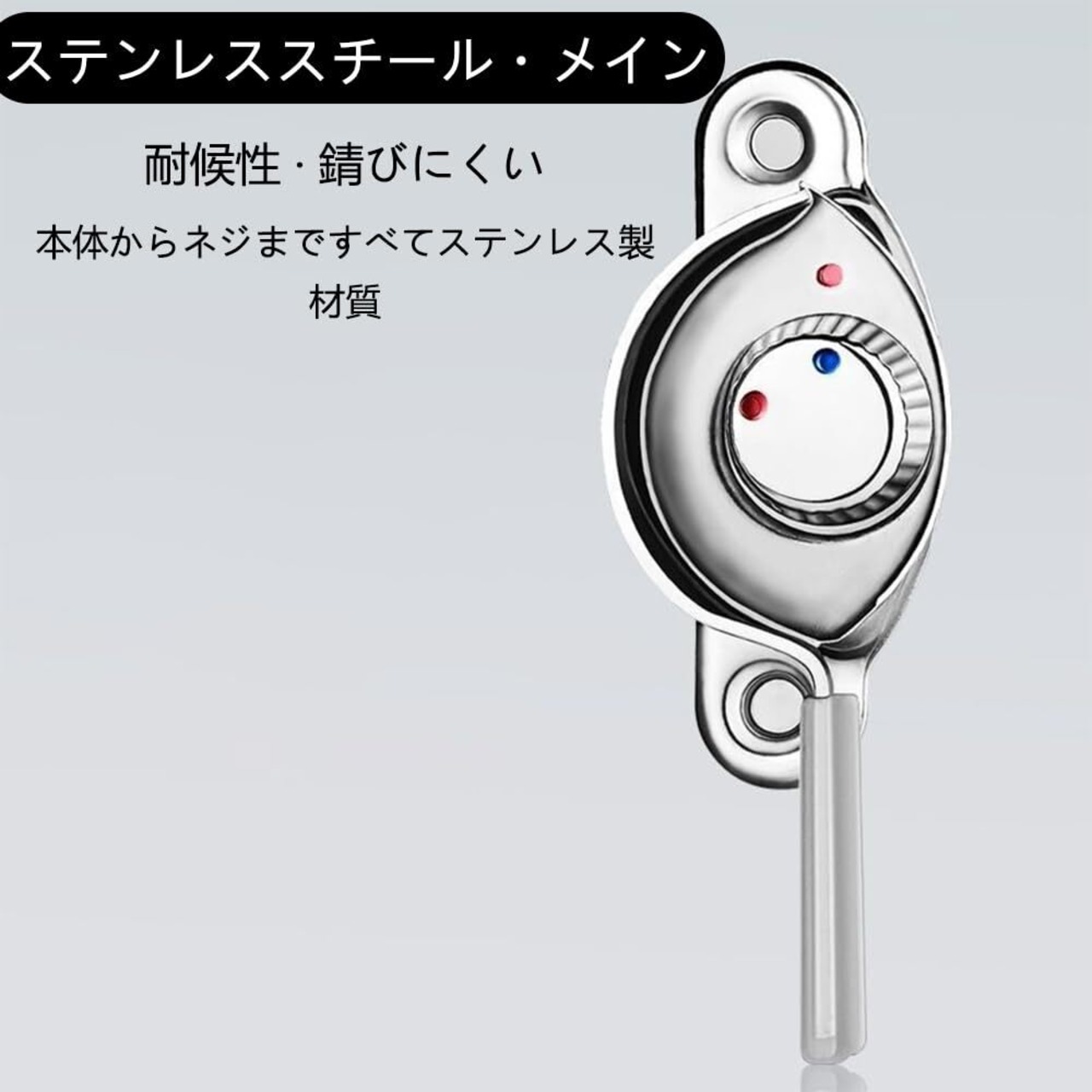 【特徴】窓サッシロックはスプリングアクションカムです。ハンドルが長く、握りやすい。