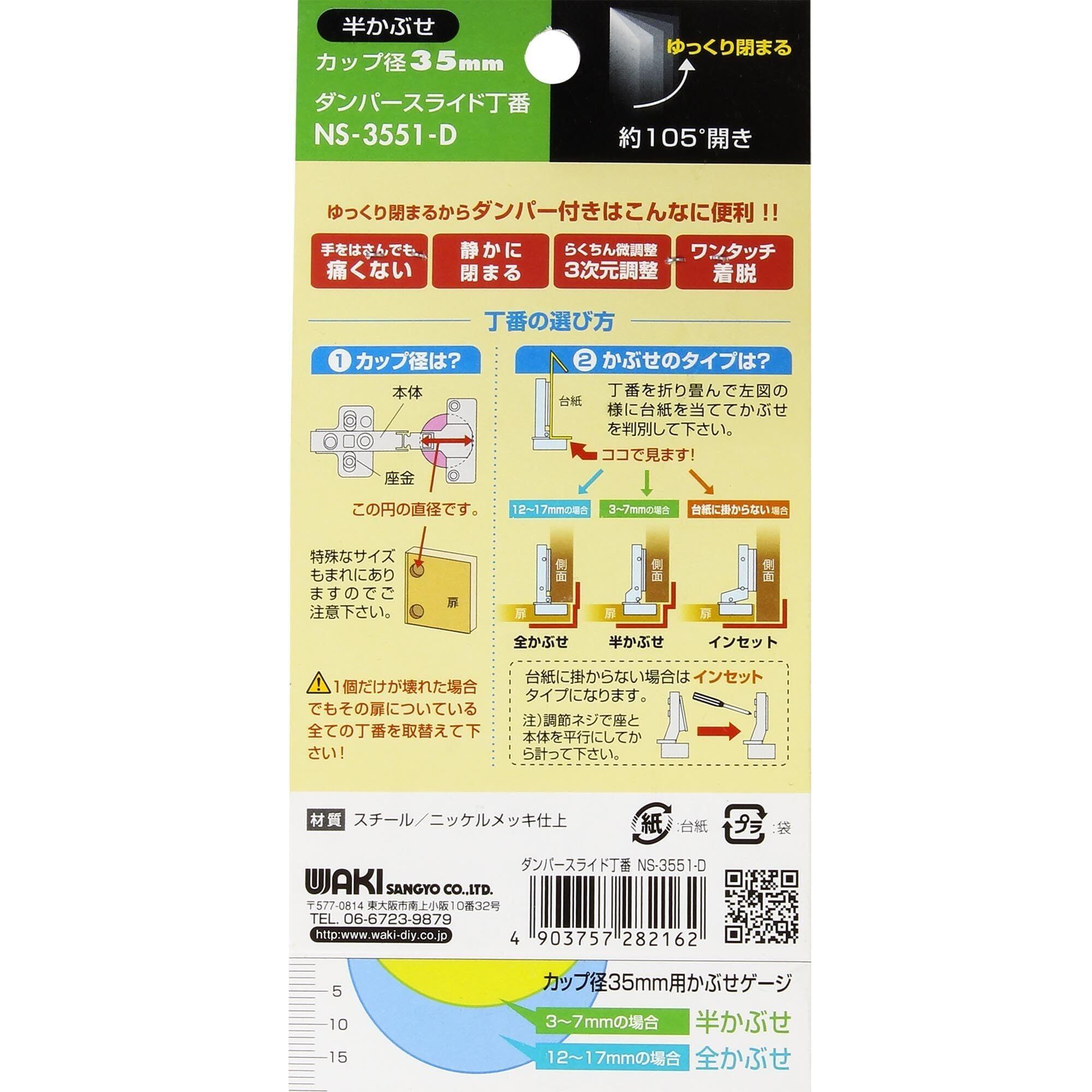 和気産業(Waki Sangyo) ダンパースライド丁番 半かぶせ 1個入 シルバー カップ径35mm 家具 キッチン 扉 NS-3551-D