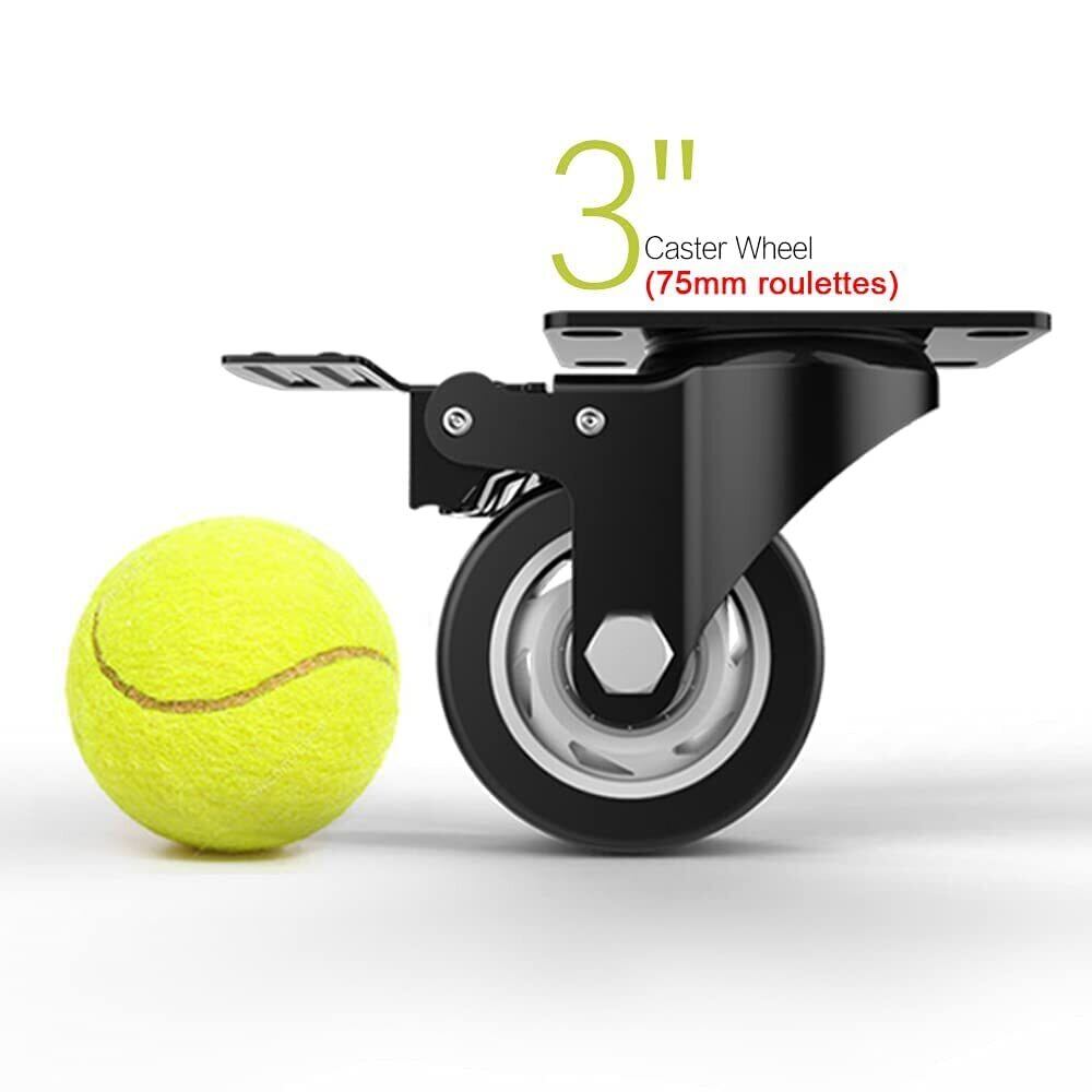 Homhoo 3インチ キャスター 車輪 ブレーキ付き 高耐久性 単個耐荷重约 113.4kg 360度回転 静音 4個セット ミュートシリーズDIY家具交換キット ホイール径76mm | Bloomia