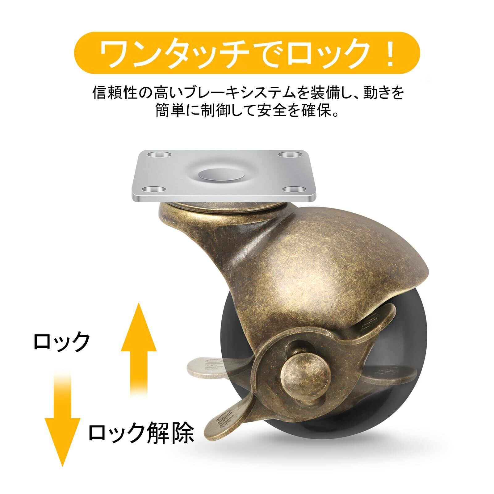 ボールキャスター 車輪4個セット、200KG耐荷重ブレーキ付きキャスター、50mmレトロスタイルプレートキャスター、高耐久性家具 キャスター、ソファ、キャビネット、椅子、DIYトロリー(ネジとドライバーを付き) | Bloomia