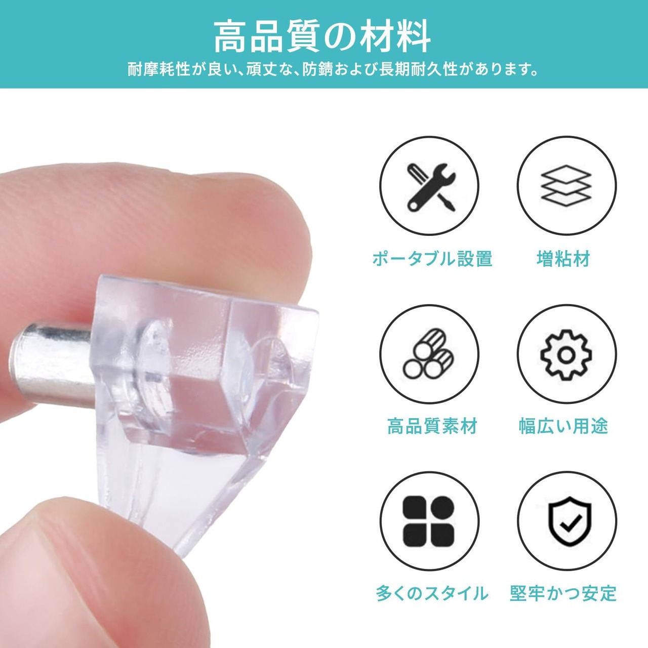【目立たない高性能サポート】 透明なデザインが家具の美観を損ねません。小さなボディに秘めた驚きの支持力で、重い本や食器も安心して収納できます。