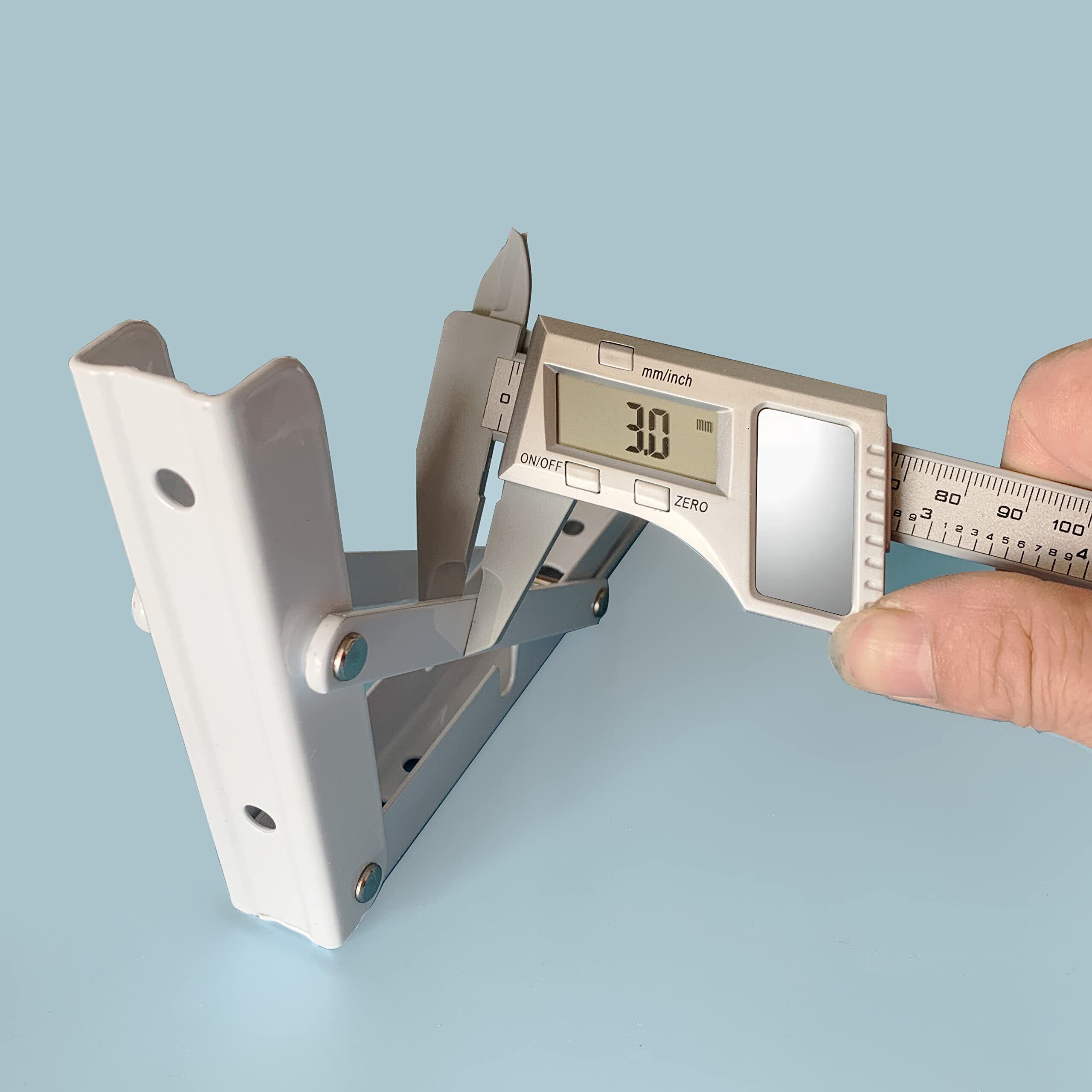 【便利な折りたたみ収納棚】邪魔な時にはワンタッチで折り畳める折りたたみ式ブラケットです、少し引っ張りながらしか折りたたみが出来なくなっているので不意に落ちる事もありません、下にあるボタンに軽く「タッチ」しながら押せば簡単にコンパクトに収まってくれるんです。場所をほとんど取りません。(ご注意:折畳時に指を挟まないように気をつけてください。)