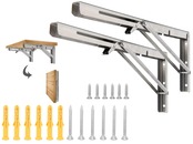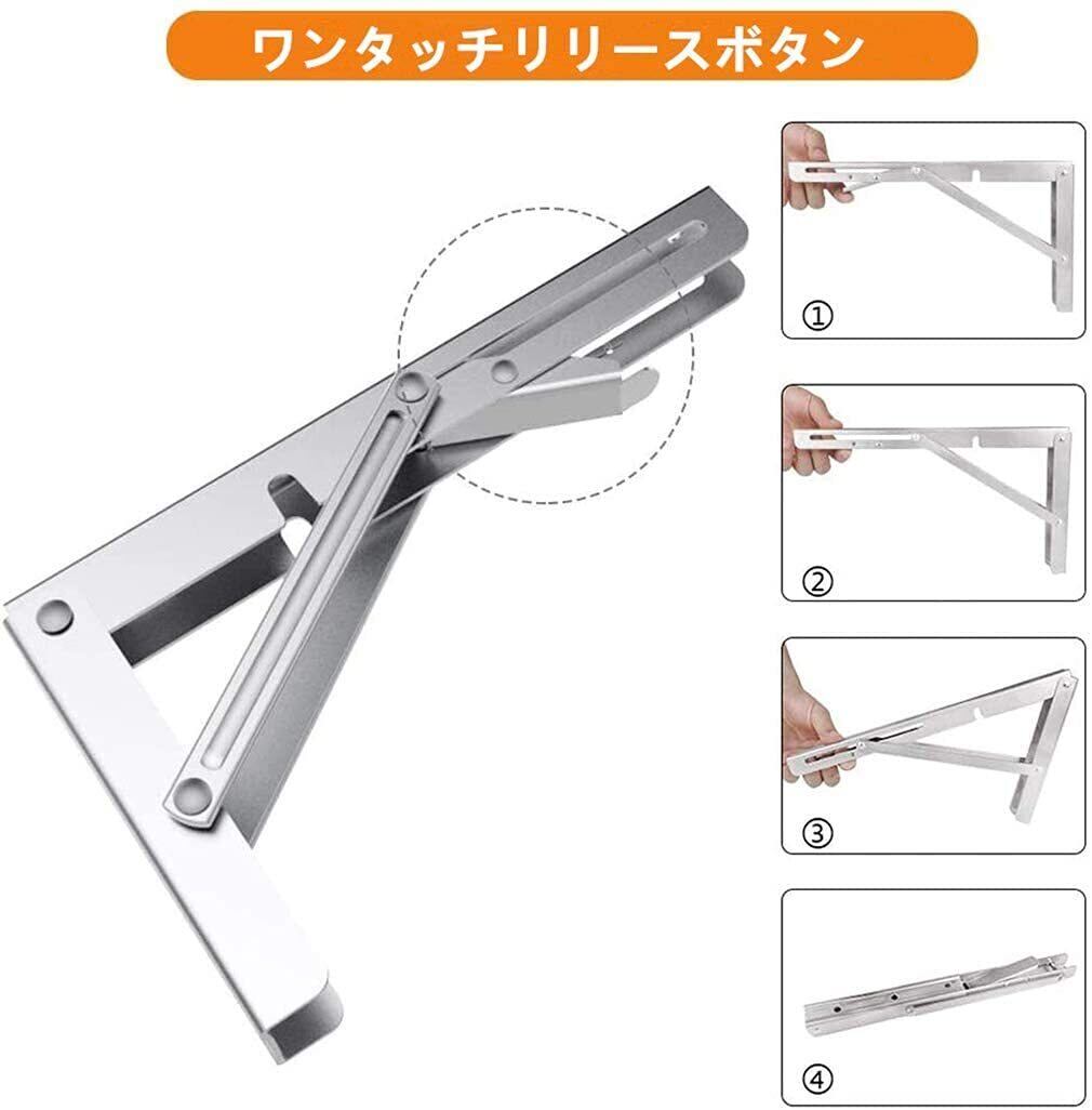 JJ Boom 棚受け 金具 L字型 ステンレス 鋼折りたたみ 式 棚 受け 金具 折り畳み金具 ,省スペースのDIY折りたたみテーブル金具取付ねじ付き2本セット (20cm)
