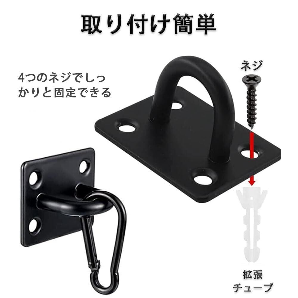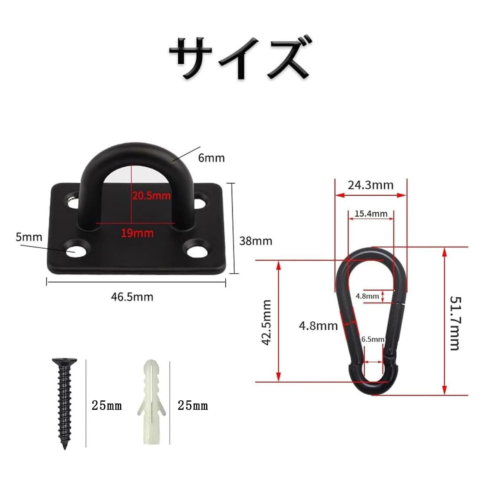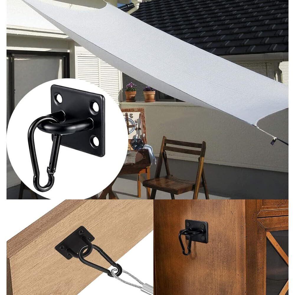 YINKE パッドアイ フック シーリングフック 壁 シェード 取り付け金具 長方形アイパッド 耐腐食性 止め 304ステンレス鋼 カラビナ 固定バックル (長方形 黒 4個セット)