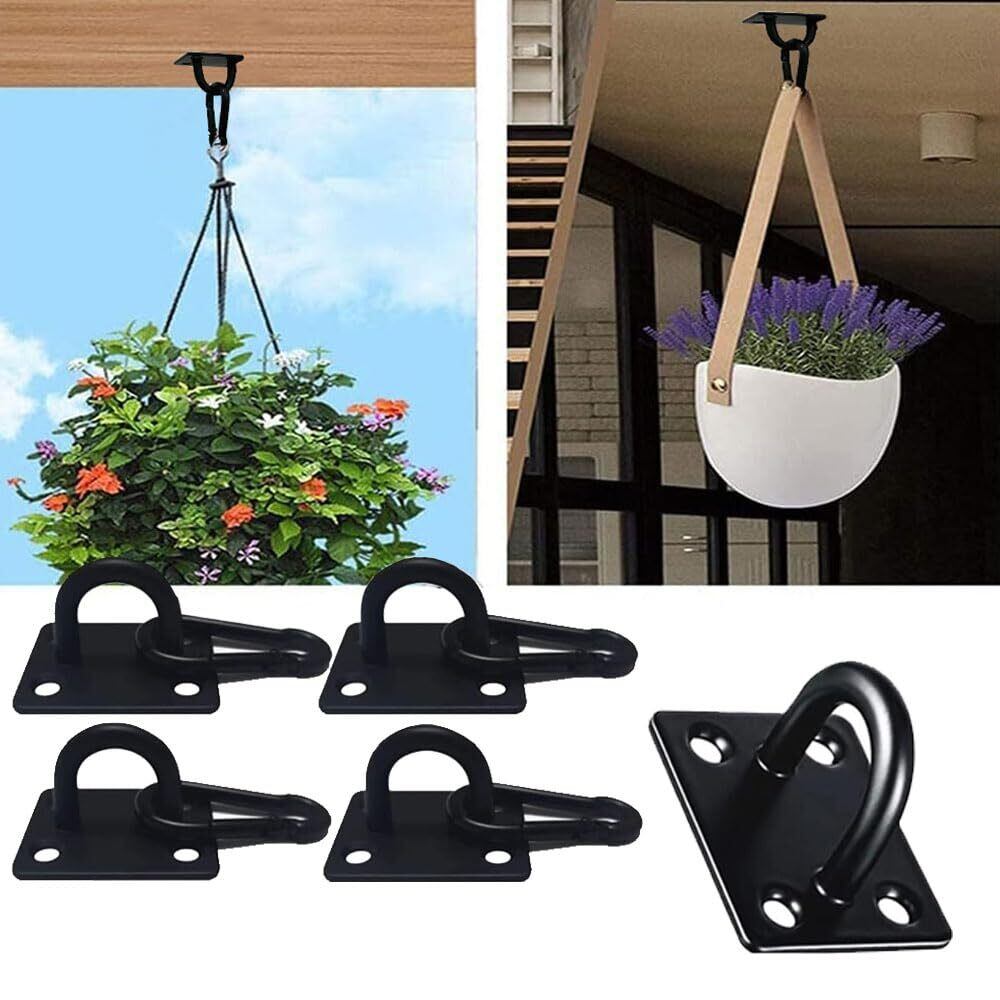 YINKE パッドアイ フック シーリングフック 壁 シェード 取り付け金具 長方形アイパッド 耐腐食性 止め 304ステンレス鋼 カラビナ 固定バックル (長方形 黒 4個セット) | Bloomia