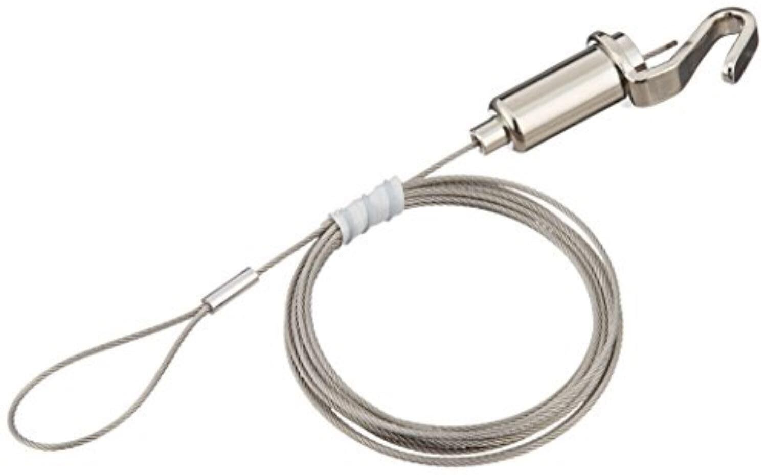フック形状の自在金具とワイヤーがセットになった吊下げ金具です。