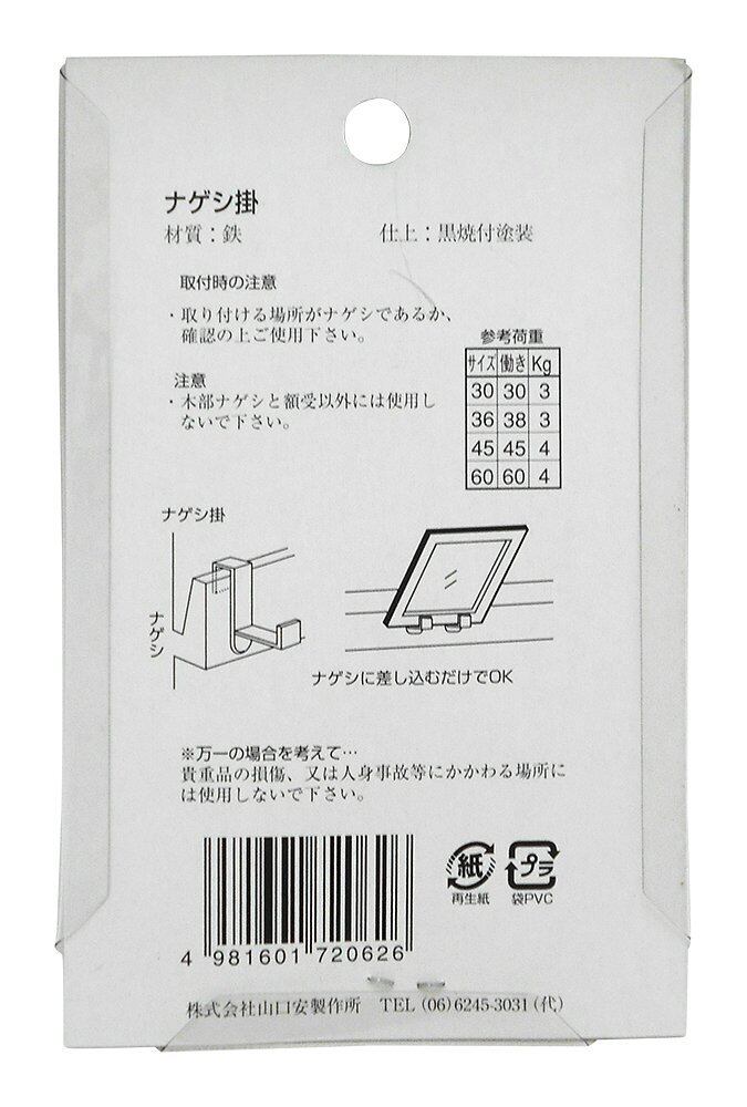 山口安製作所額受ナゲシBS特上ナゲシ掛(黒)30mm2個入Y-7206-2