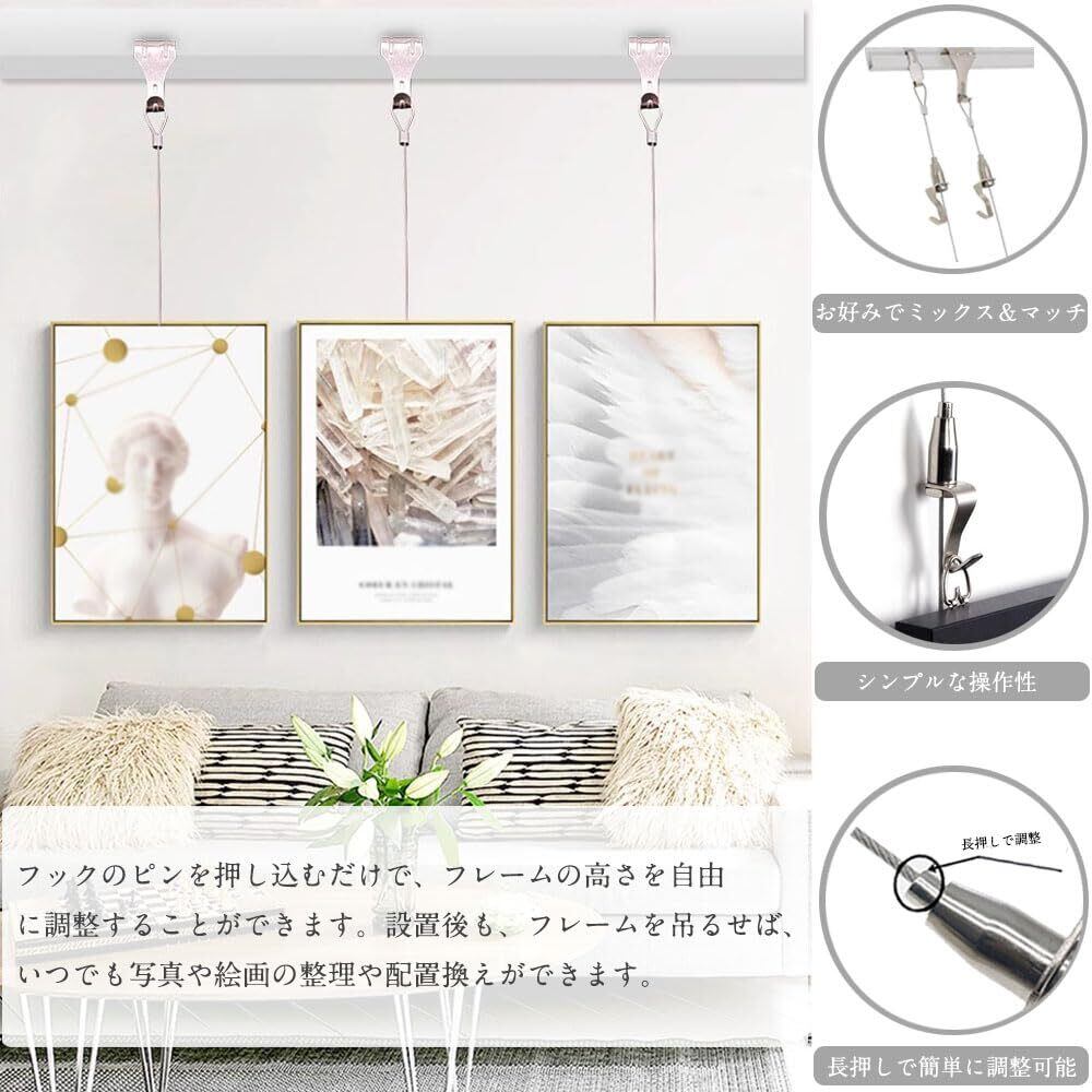 ピクチャーレールワイヤーフックは非常に汎用性が高く、美しい絵画やアートモデル、時計、ディスプレイスタンド、バナー、プロジェクタースクリーンなどを吊るすのにも使用できます。"
