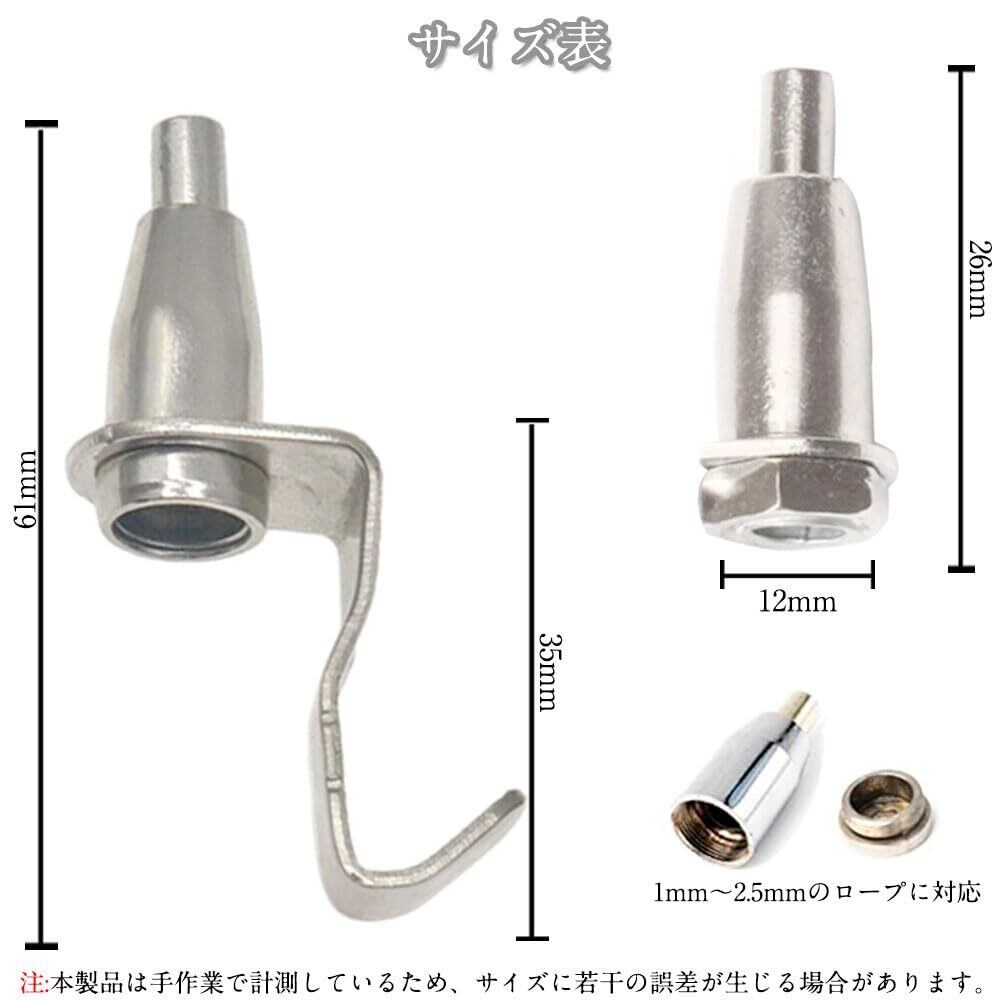 セット内容:ワイヤーフック10個、全長約61mm 耐荷重30kg(1mm~2.5mmのワイヤーロープに対応します。)カラー:ニッケル、材質:鉄、重い額縁を掛けても壊れない強度に設計されています。