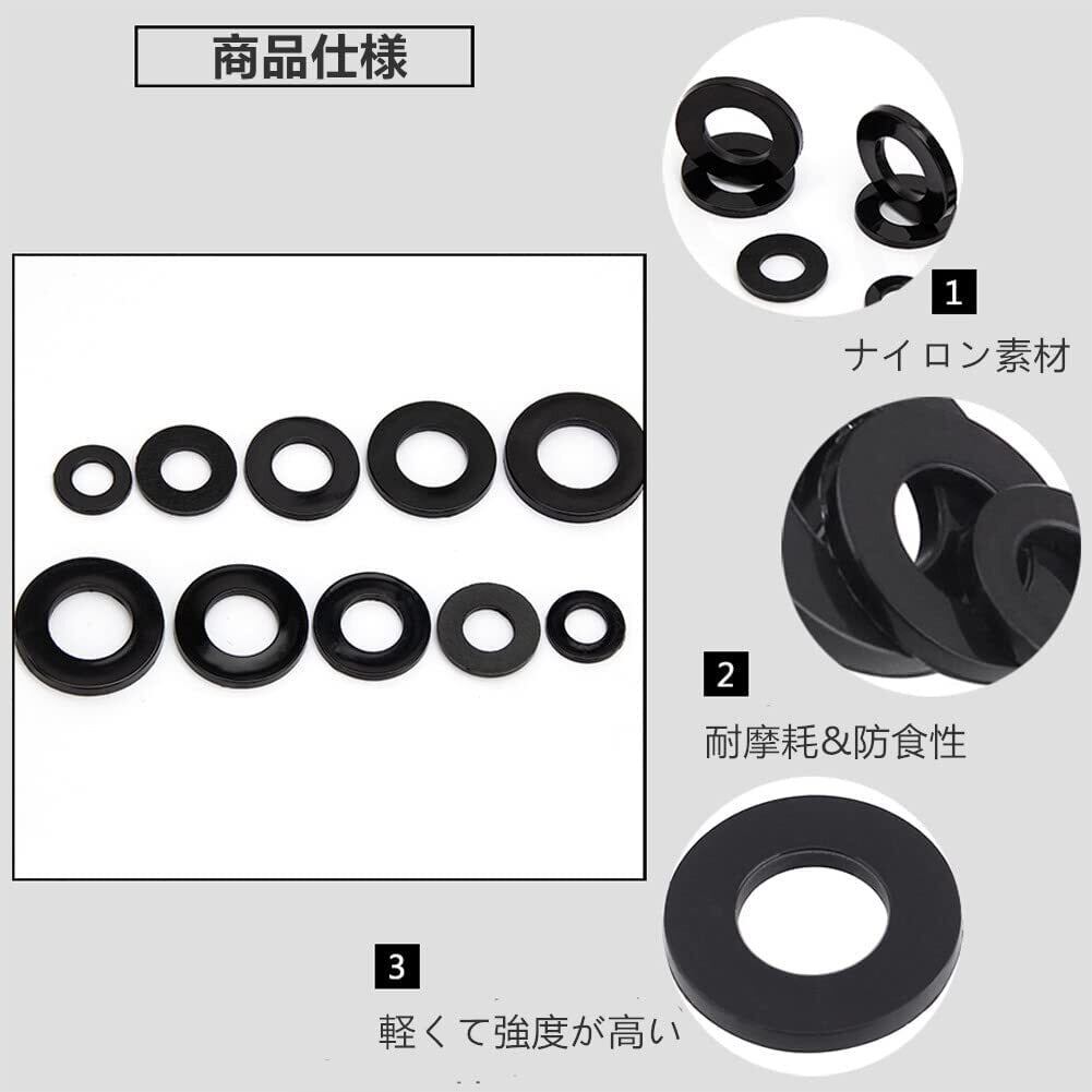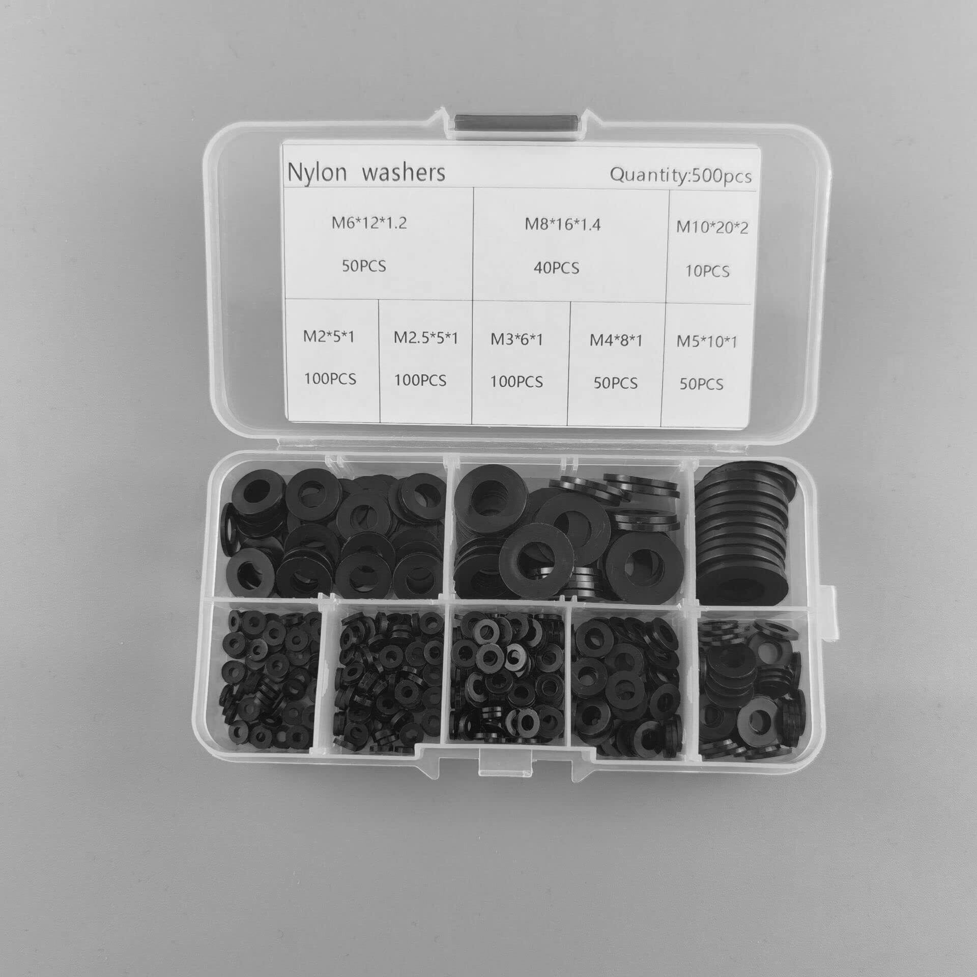 ナイロンフラット 500個入り フラット ワッシャー 平座金 M2~M10(M2 M2.5 M3 M4 M5 M6 M8 M10)スペーサー ナイロン絶縁 防水 平ワッシャー 補修 便利 ツール ブラック 収納ボックス付き (ブラック) | Bloomia