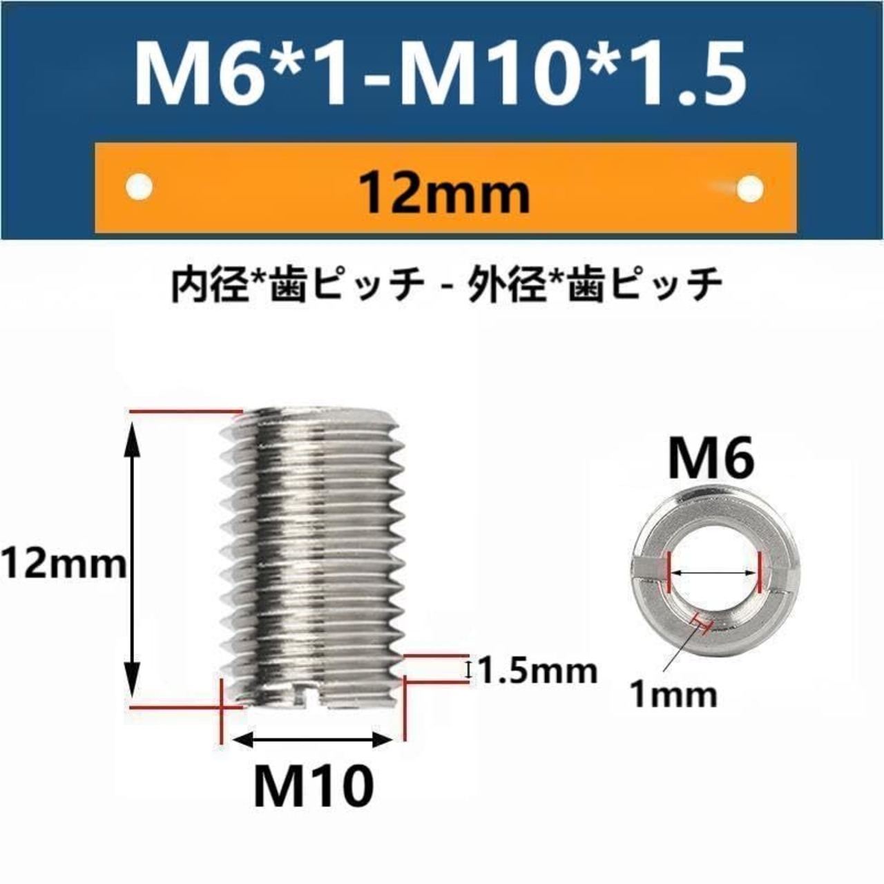 Korekaou インサートナット 10個 ネジ変換アダプター ステンレス鋼 一行溝 埋め込みナット ネジ山補修 減速ナット (内径M6*1 外径M10*1.5 長さ12mm)