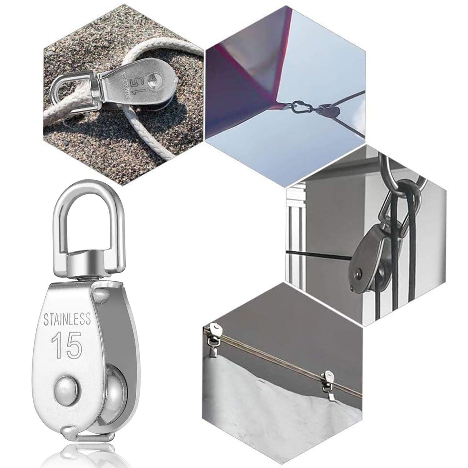 滑車 M15 四個セット 耐荷重35kg ローププーリー スイベル式 ステンレス ロープ 滑車 耐食性 耐久性 耐摩耗性