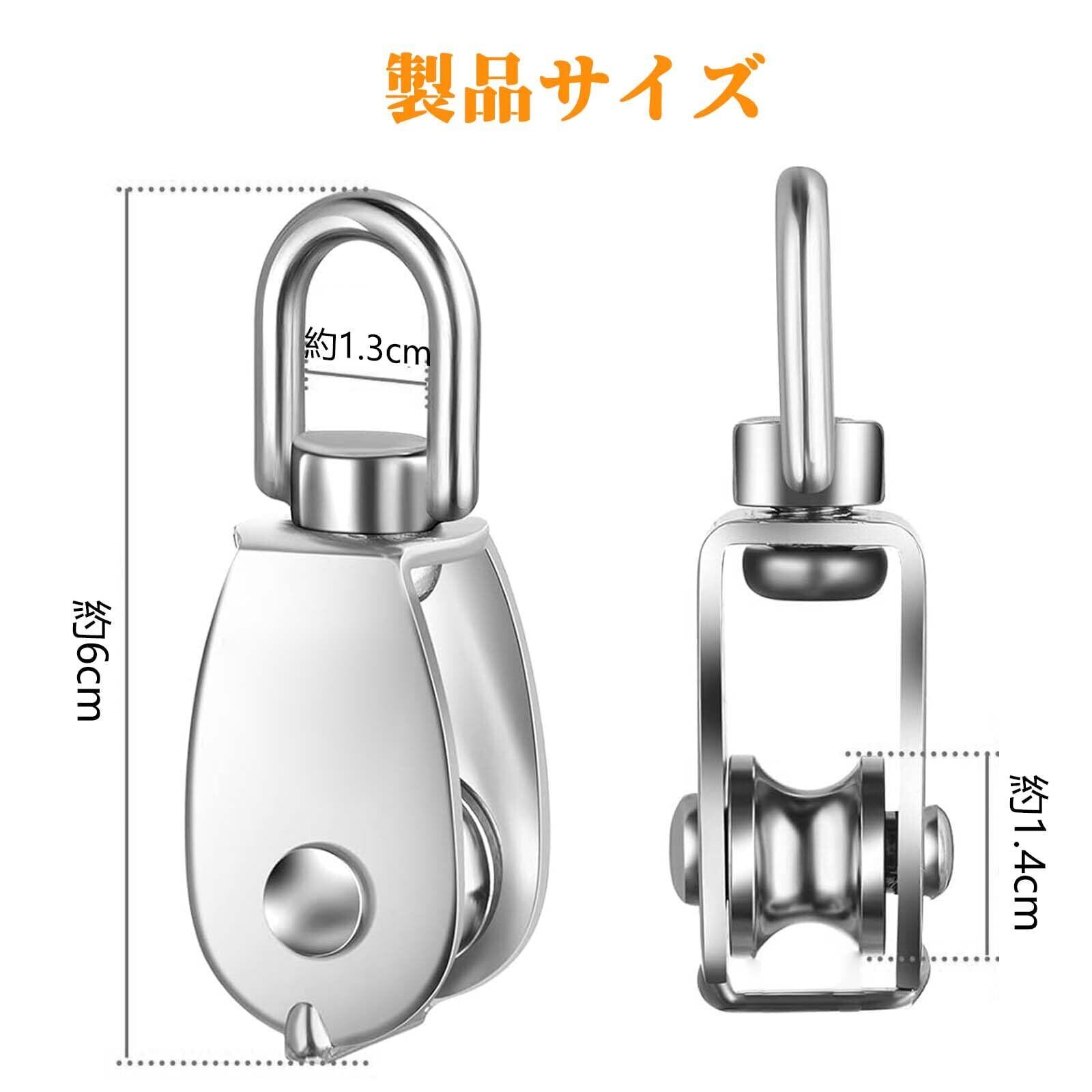 PAVIKE 滑車 滑車 小型 M15 滑車 プーリー 滑車 ロープ (2個セット) スイベル式 ステンレス滑車 豆ブロック 耐荷重70kg 室内 屋外 貨物輸送 クライミング 建設工事 | Bloomia