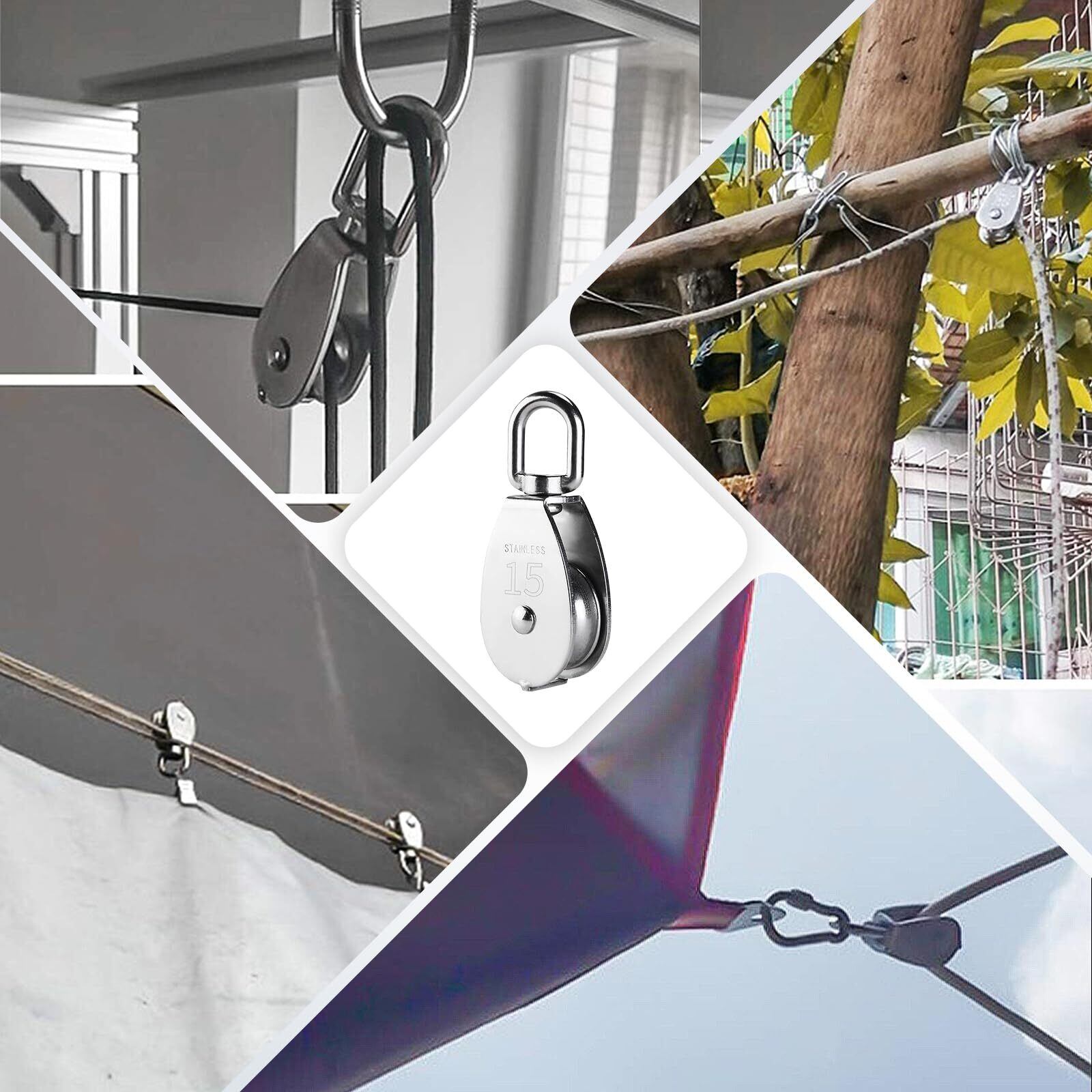 Veenkeny 滑車 M15 8個セット ステンレス滑車 小型 ローププーリー 耐荷重 耐摩耗性 スイベル式 ロープ滑車 小型プーリーブロック 省力プーリーローラー クライミング 貨物輸送 荷揚げ 建設工事 室内 屋外 | Bloomia