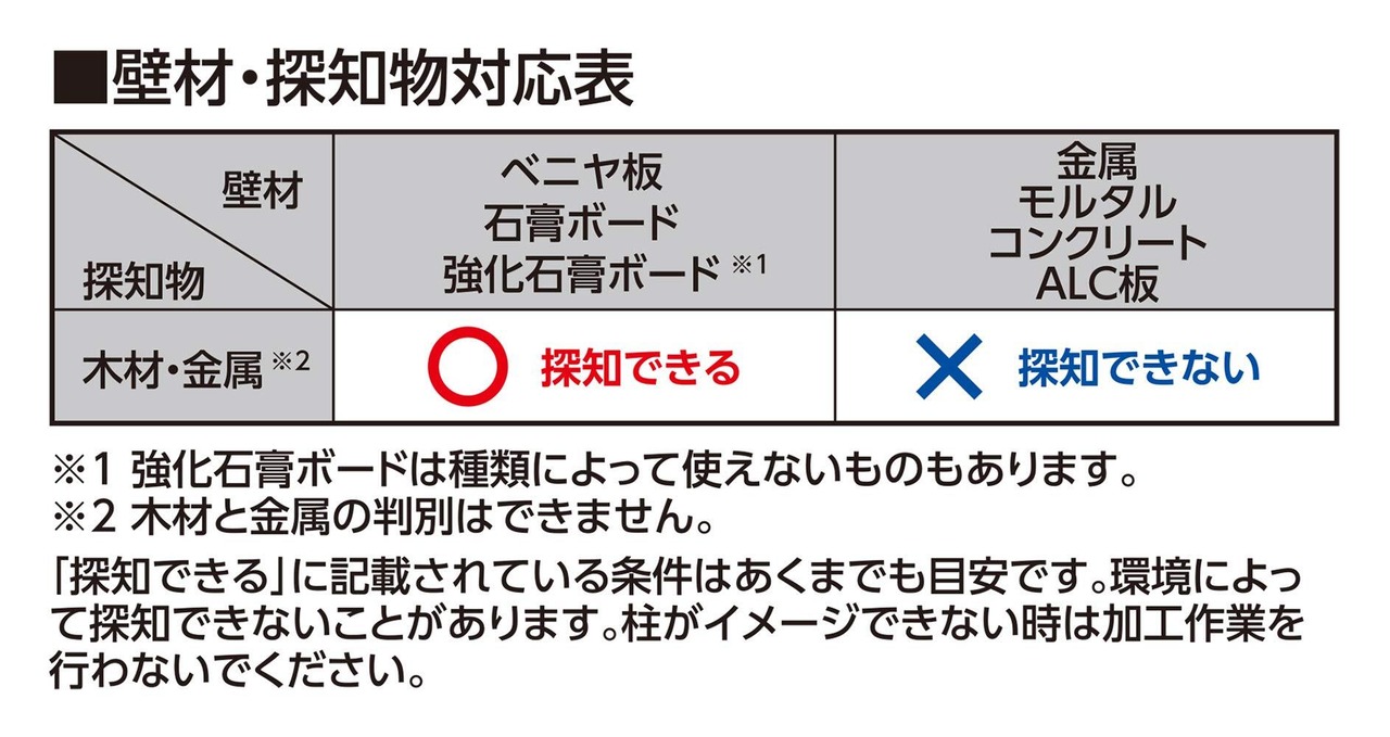 探知可能下地材:木材・金属 ※木材と金属の判別はできません