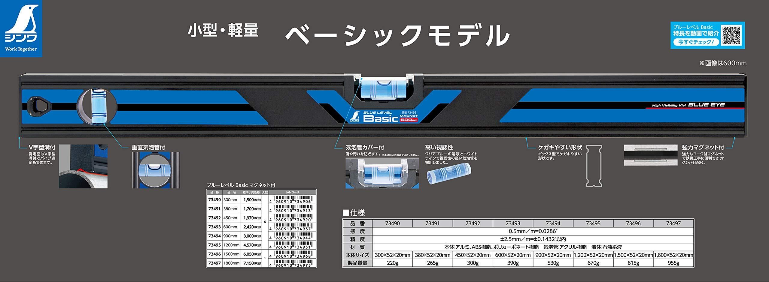 シンワ測定(Shinwa Sokutei) ブルーレベル Basic 300mm マグネット付 73490
