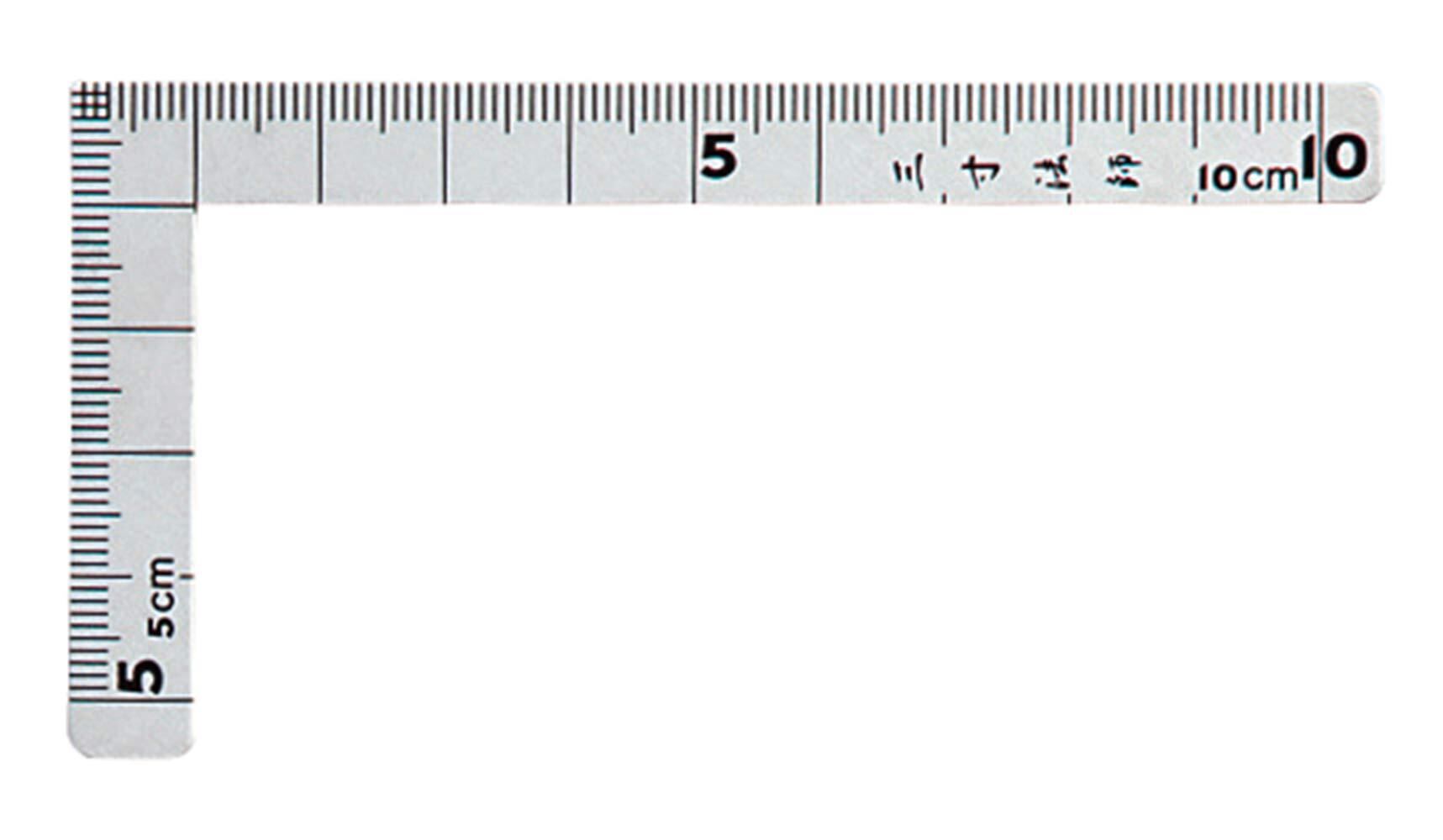 表目盛 ●長枝:外目盛10cm 内目盛1mmピッチ10cm ●短枝:外目盛5cm 内目盛1mmピッチ5cm