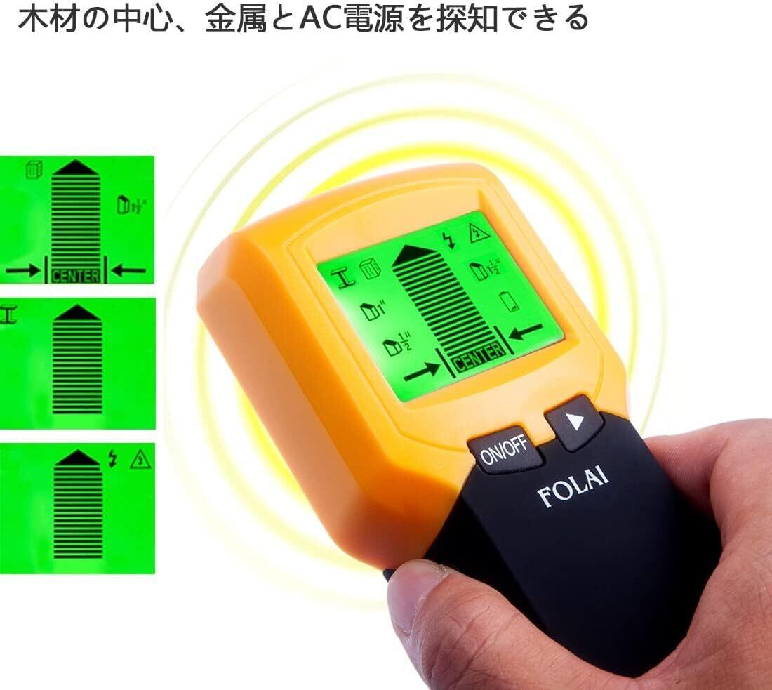 FOLAI 下地センサー 下地探し 壁うら探し 一台三役 木材/金属/AC電源探知 電気の配線 自動オフ機能 日本語取扱説明書付き