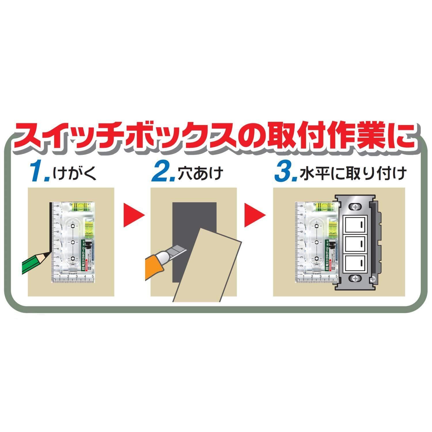 用途:埋込式スイッチボックスやコンセントの取付時、窓あけ用のケガキ作業や水平、垂直の測定に
