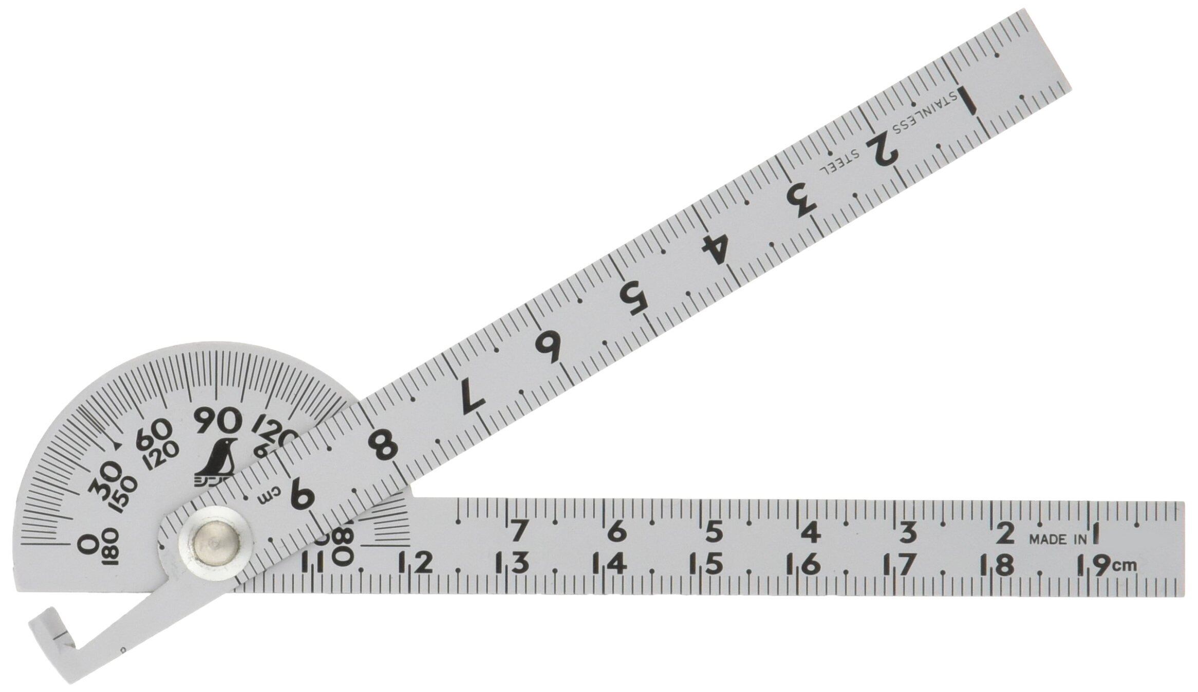 ●角度の測定やケガキ、長さ測定に使用するプロトラクター。 ●目盛はエッチングで刻み、黒クロムメッキを施してあるので取れません。 ●シルバー加工で表面の反射を抑え目盛が読み取りやすくなっています。 ●2本竿タイプなので、鋭角な角度まで測れます。 ●10㎝のコンパクトサイズで携帯に便利です。