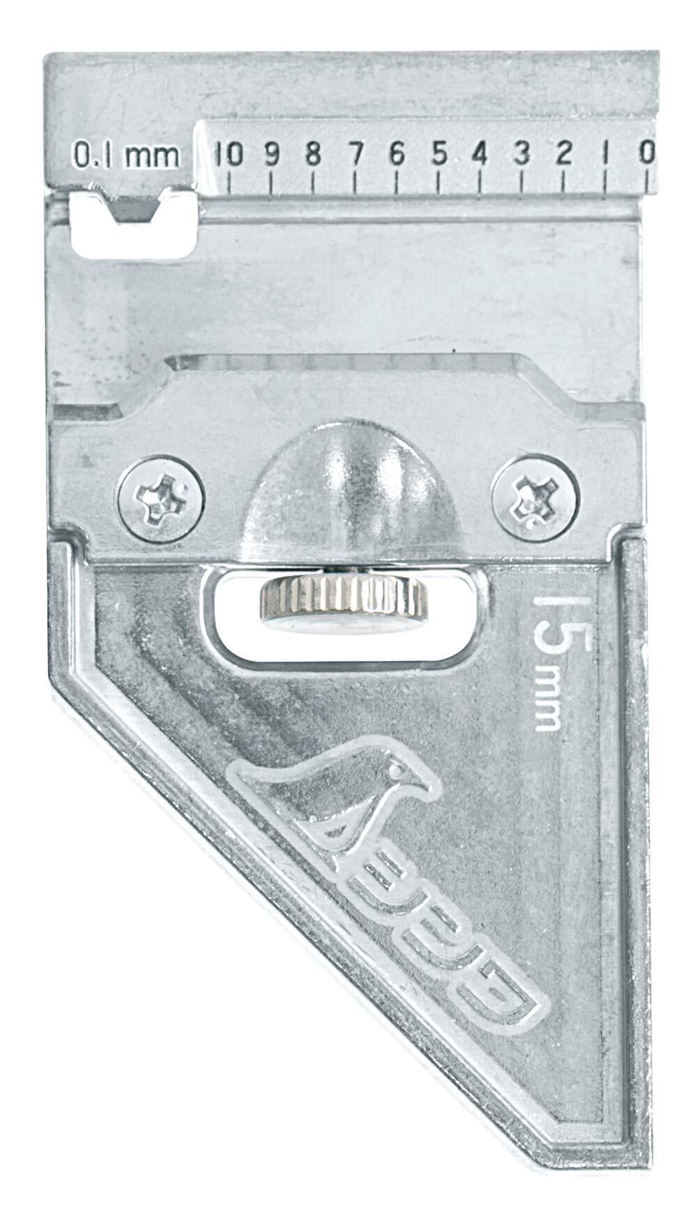 熱に強く、溶接作業にも使用できる曲尺用ストッパーです。直角・45度・平行線のケガキが可能です。