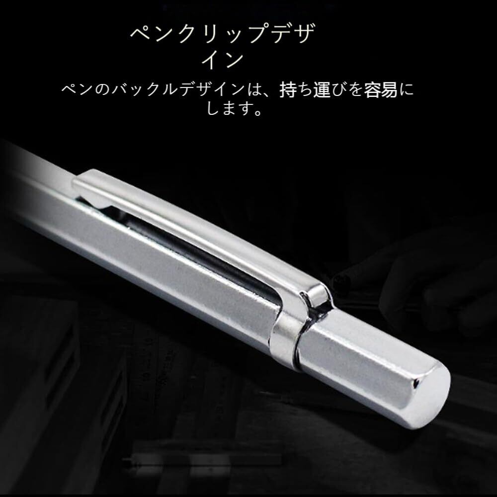 【先端超硬チップ】工作物への線引きや芯出しに。ペン本体は高品質のアルミニウム合金製で、硬度が高く、丈夫で耐久性があり、クロムメッキ処理により、錆びにくく、酸化しにくい。 鉄鋼、金物、陶磁器、プラスチックへのケガキに。