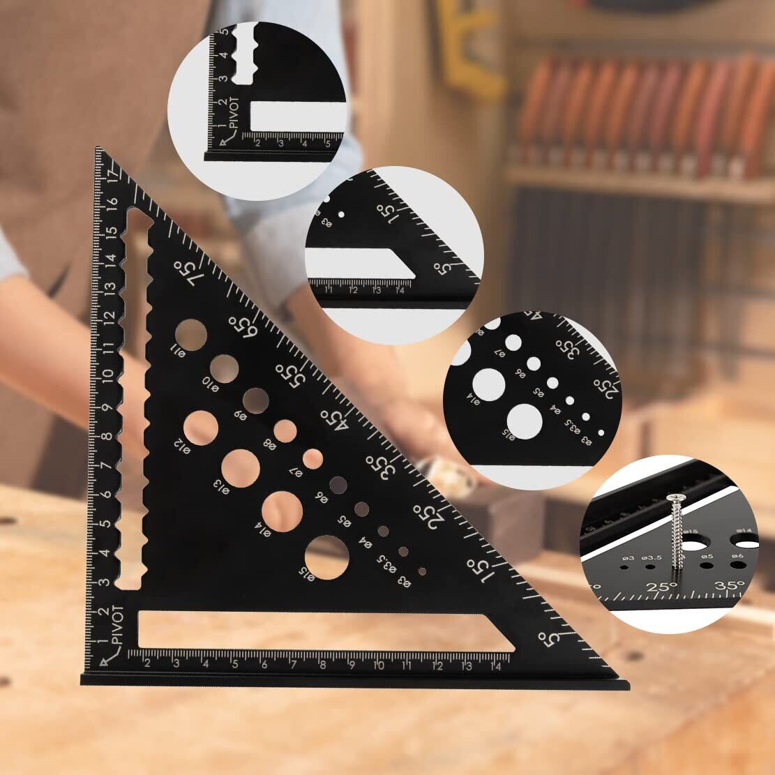 Beslands三角定規 木工用 18*18cm アルミ合金 丸鋸定規 大工道具 90度 45度 ケガキ工具 木材カット 穴あけ ドリルガイド DIY作業に適用