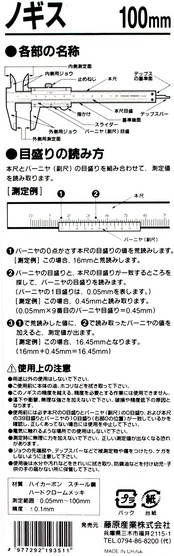 ※このノギスの精度を超える、精度を必要とする作業には使用できません。