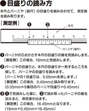 ・本尺とバーニヤ(副尺)の目盛を組み合わせて、精度ある値を読み取る