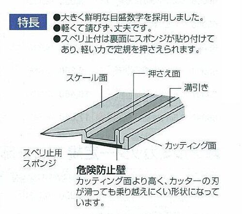 ●大きく鮮明な目盛数字を採用。●スベリ止付で、軽い力で定規を押さえられます。