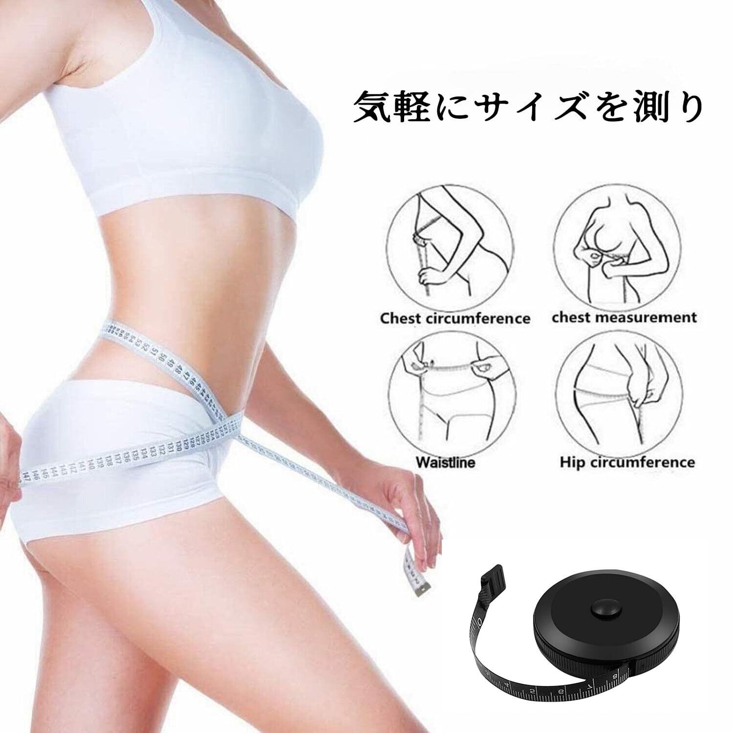 メジャー 巻き尺 裁縫 150cm(60inch) 洋裁 メジャー 定規 テープメジャー バスト ウエスト 測定 インチ センチ メジャー 服 両面目盛 オートメジャー 巻取りボタン付き スリーサイズ ロングメジャー 計測 手芸 軽量 胸囲測定 ブラック