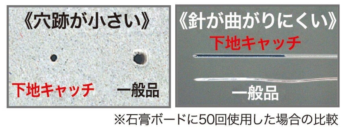 強くて細いフッ素樹脂加工針の為、壁の傷を抑える