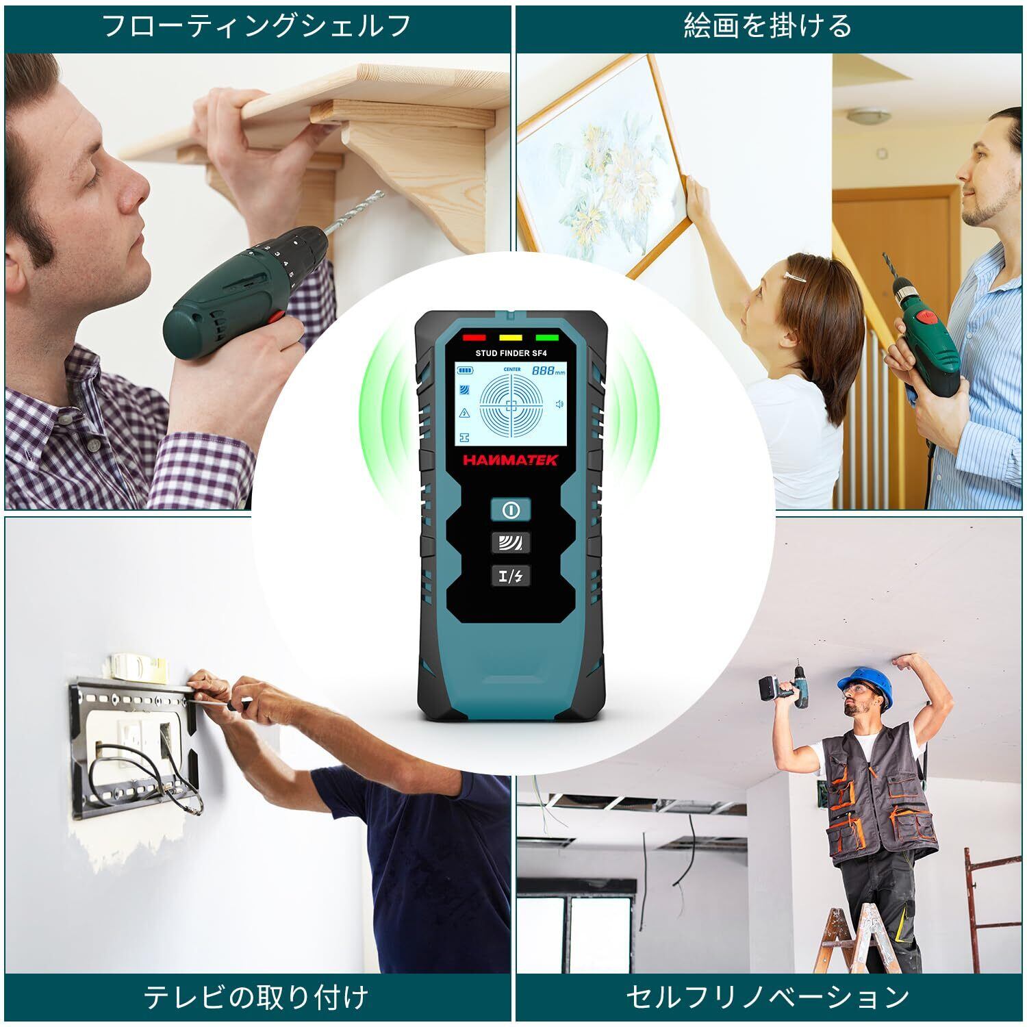 HANMATEK 下地探し 下地センサー 下地チェッカー 壁うらセンサー 深度距離表示 五合一アップグレード木材精密モード両頭ボルト探索ツール、金属中心縁、両頭ボルトと交流電線、壁パイプ位置決め器に使用 (SF4)