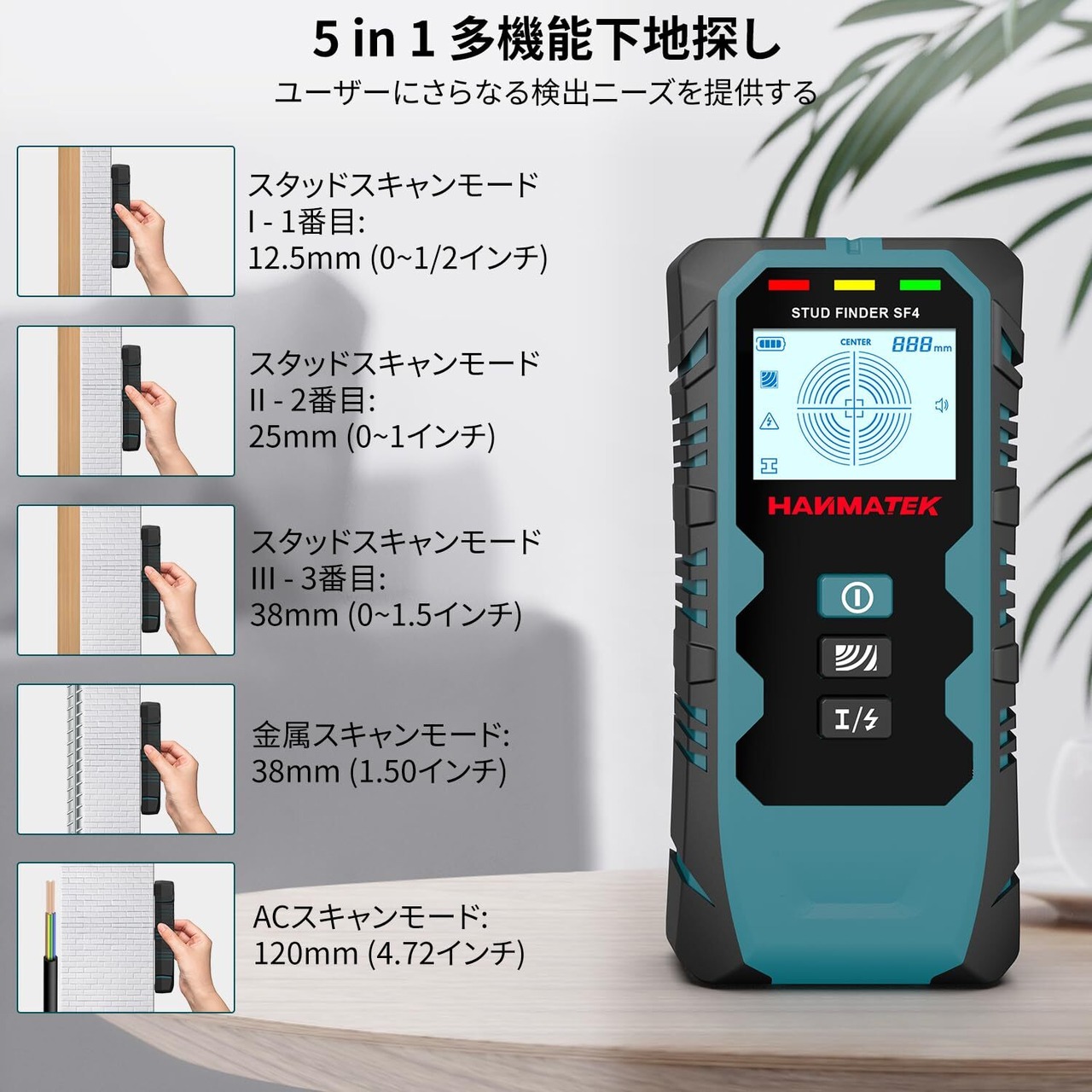 HANMATEK 下地探し 下地センサー 下地チェッカー 壁うらセンサー 深度距離表示 五合一アップグレード木材精密モード両頭ボルト探索ツール、金属中心縁、両頭ボルトと交流電線、壁パイプ位置決め器に使用 (SF4) | Bloomia