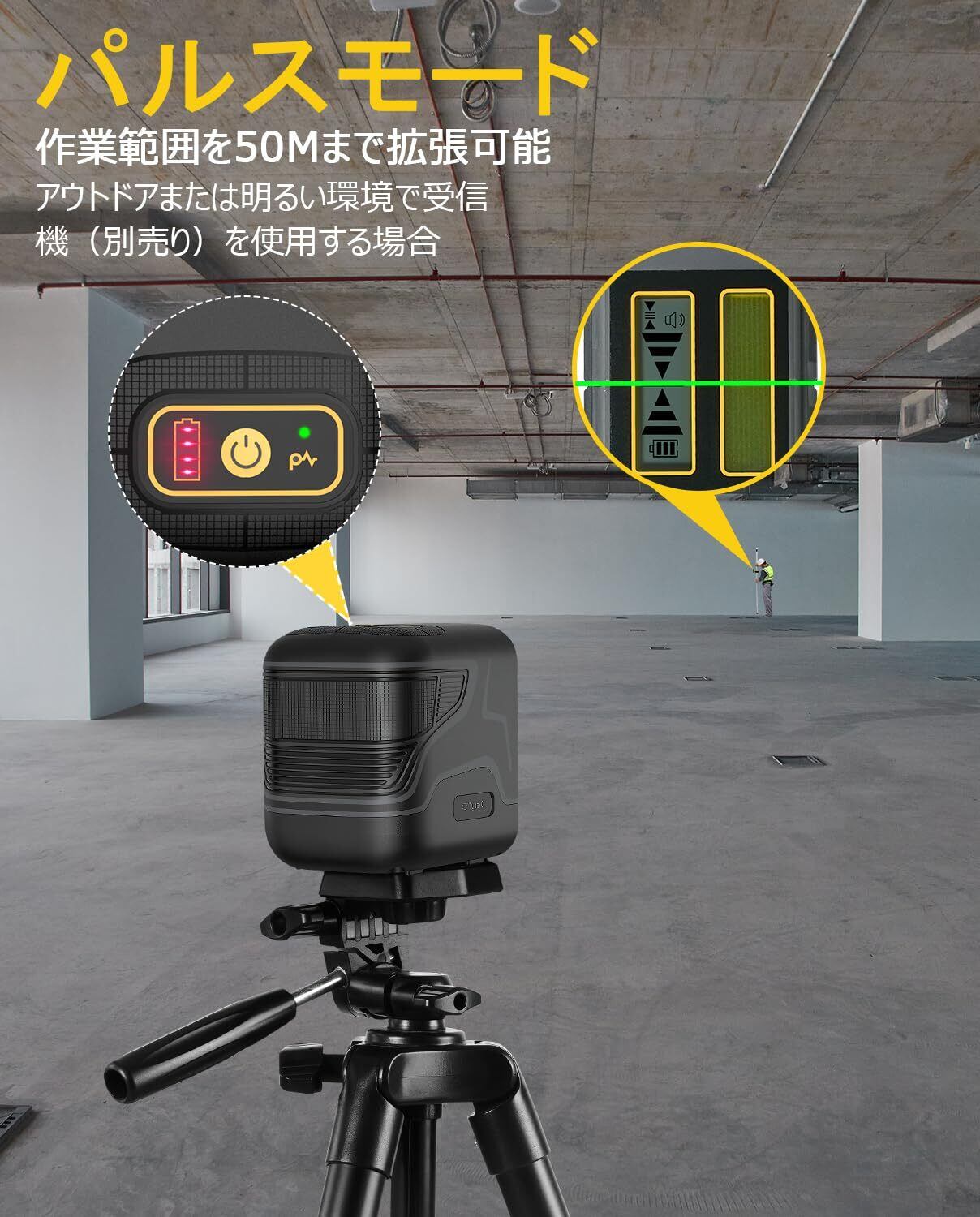 アウトドア対応パルスモード: インドアでも明るいアウトドアでも優れた性能を発揮します。パルスモードでは、受信機 (別売り) を使用すると、作業範囲が50メートルまで拡張されます。レーザービームが見えにくい明るい日光の下でも、精確に作業を続けることができます