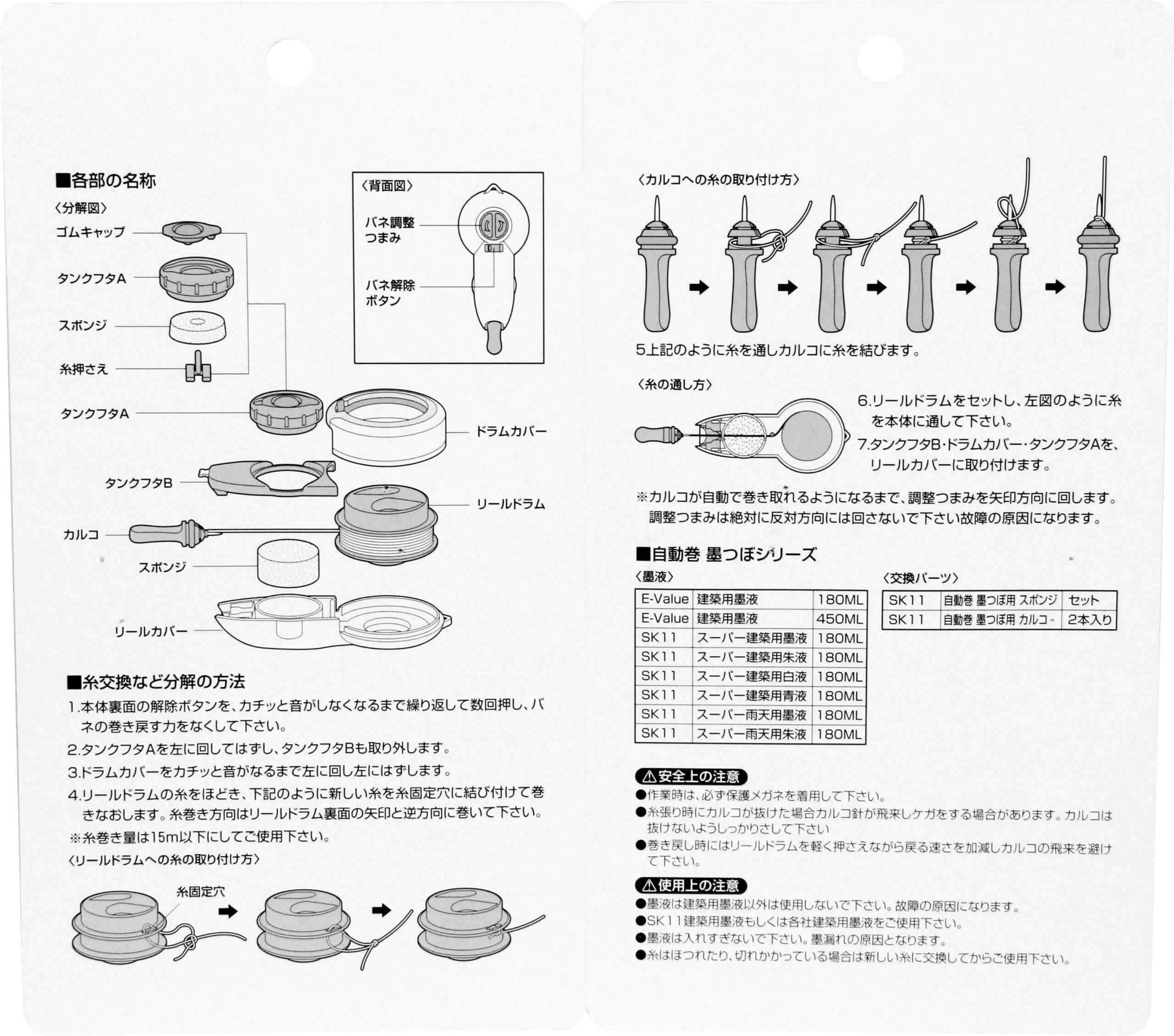 特徴:7メートル自動巻取り小型軽量墨つぼ