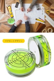 【機能的な 水平器】小型・丸型の水平器 どこにでも置いて2方向の水平を手軽に計測できます。また、大きな空間を測定するときは端と端に置くことで測定することが可能です。