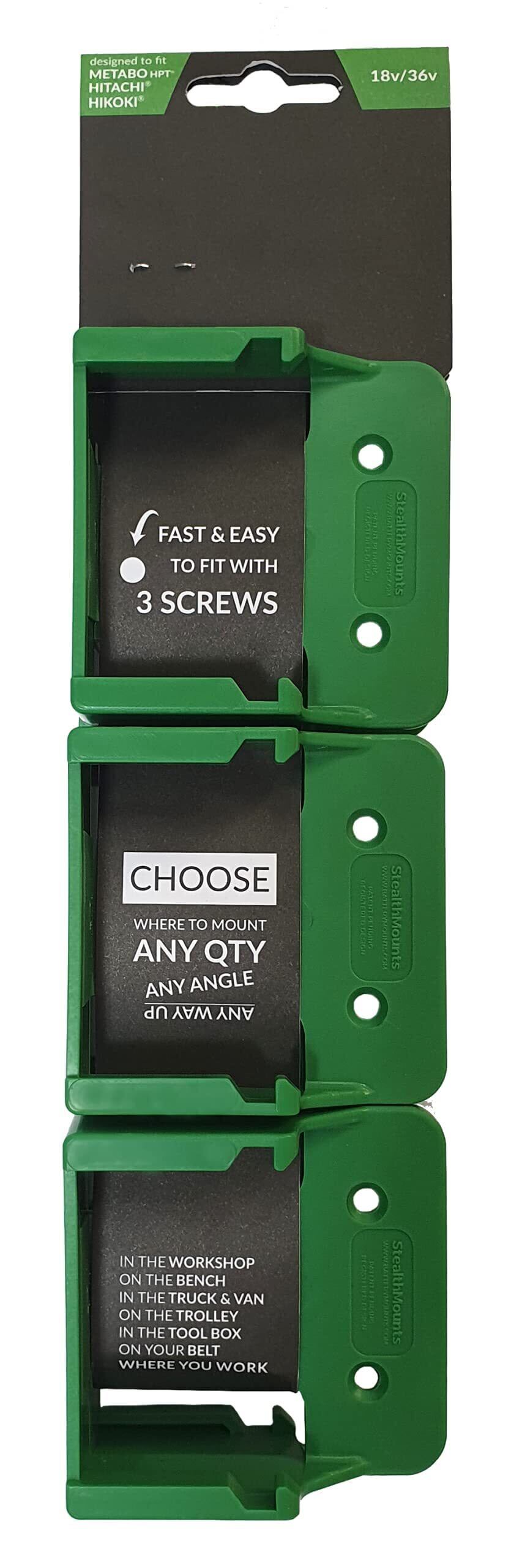 ステルスマウント バッテリーマウントハイコーキ/メタボHPT/ヒタチ18V用 6個入り グリーン BM-MHH18-GRN-6