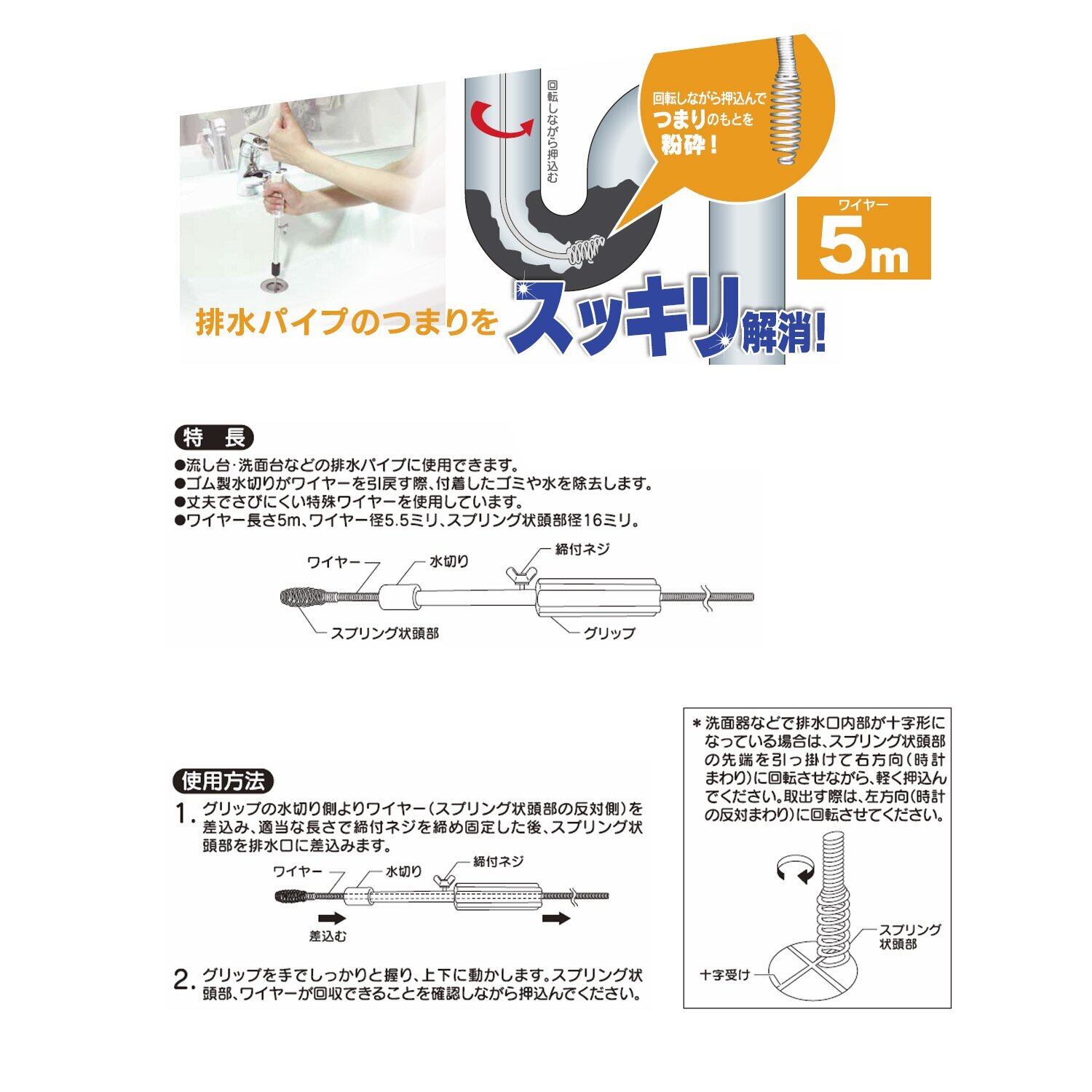 カクダイ パイプクリーナー 5m 排水管洗浄用 6050
