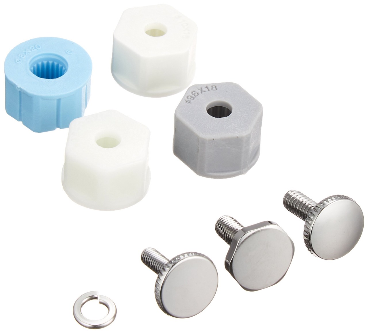 注意:ハンドル交換時は、2ハンドル混合栓のプラスチックハンドルを取り外すと、メッキが施されていないスピンドルが使用されている場合がございます。この場合は792-805が必要です。 ハンドル下のナットまで隠れない製品は、呼20の水栓にも取付できます。